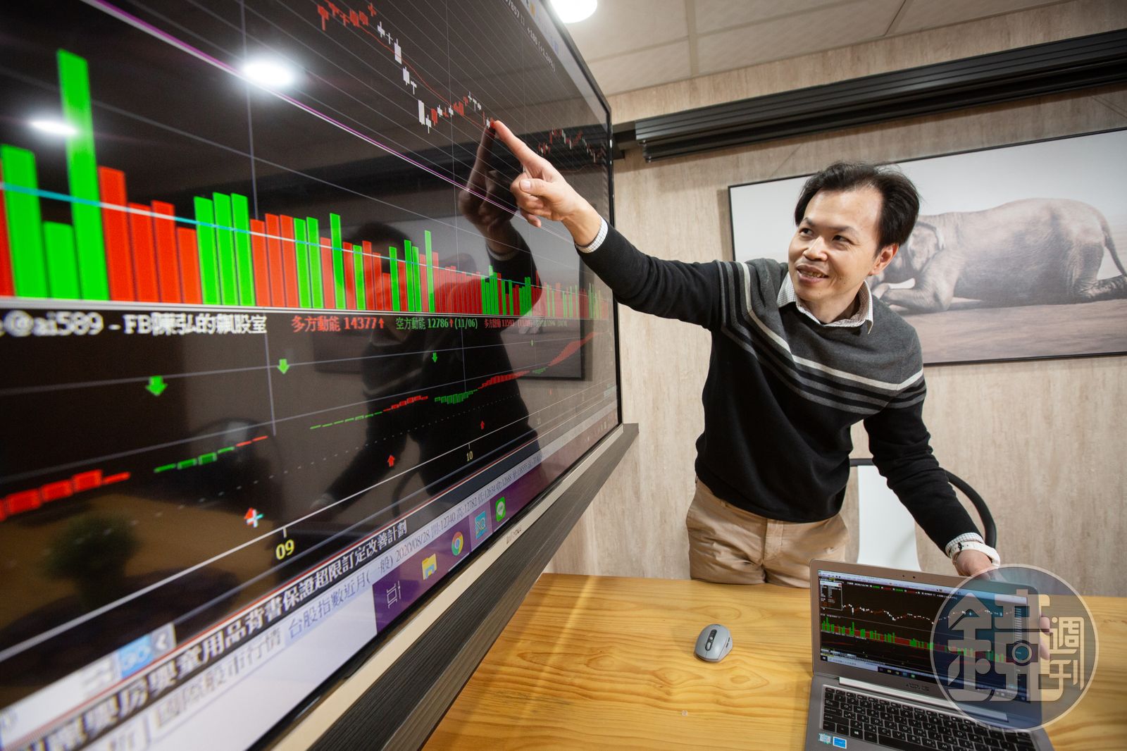午後2點走進台北東區的商務中心,投資達人陳弘已經備好資料等著受訪,這裡是他平時看盤的據點,每天早上8點便埋首在國際盤中,並等著台股開盤,儼然股市公務員。