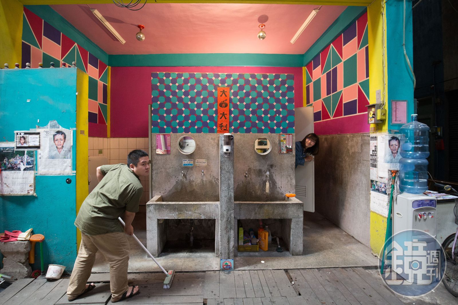 慣性劃錯重點的當然還有很多,而且從很早就開始了。2017年拍攝台中「忠信市場」專題,3天總共要拍15家小吃照片外加5家影音,時間緊迫又耗費體力,但是看到改造後彩色普普風的公廁瞬間補滿血,拉著文字記者kiki、奉咖啡的老闆大頭,指揮大家各就各位,扮演上廁所的、偷窺的、怕被偷看的,就連上廁所的路人都被我們拉來一起入鏡。