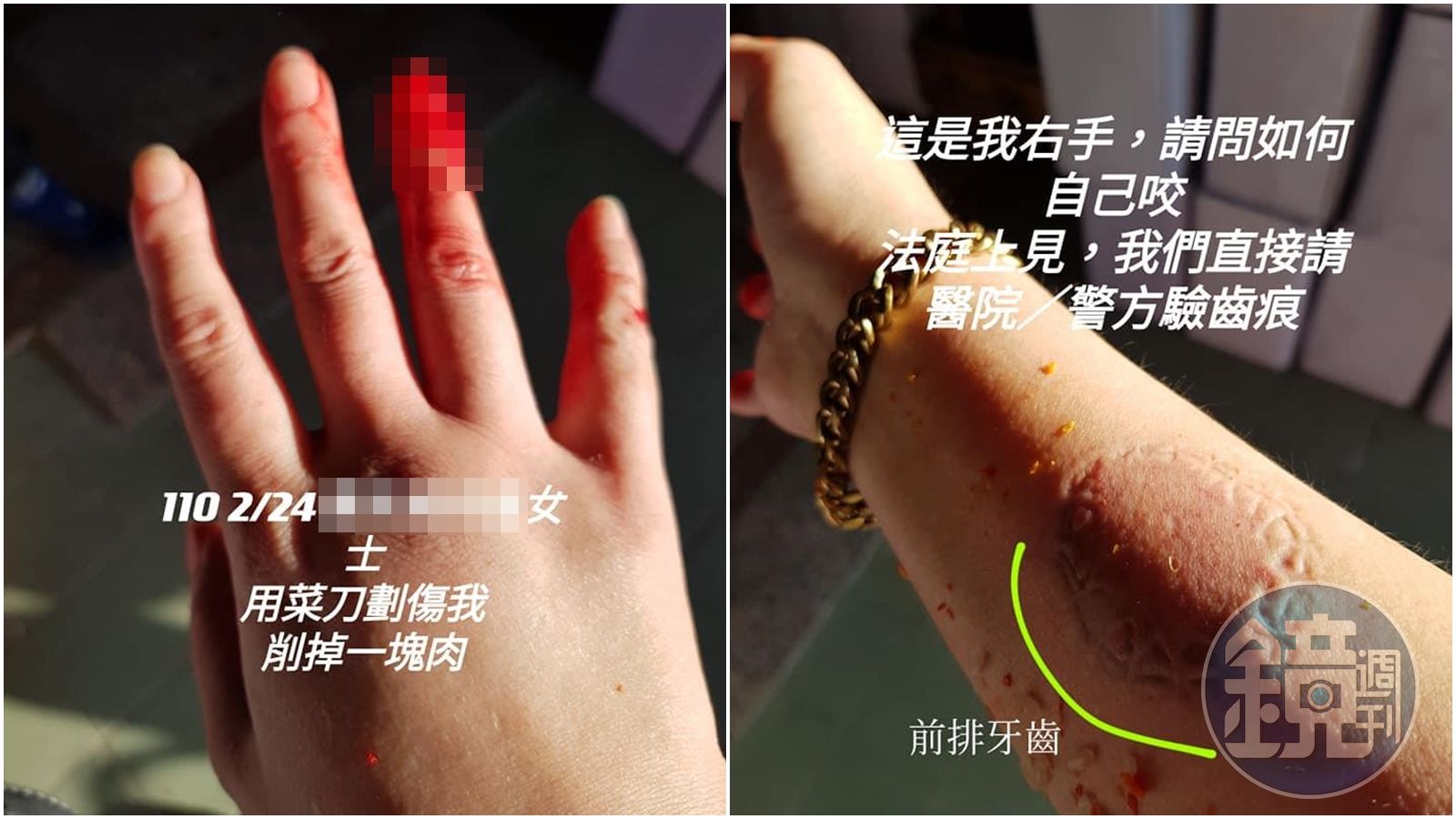 有次發生衝突李女與丈夫搬出家裡,因有重要的東西遺漏返回公婆家拿,孰料公婆不僅接力砲轟她,甚至在她打開冰箱拿飲品時,遭到婆婆彎下腰咬她手臂,接著再拿辣椒油潑她,她趕緊拿起菜刀作勢喝斥,沒想到婆婆跟她拉扯,又削掉她右手無名指一片肉。