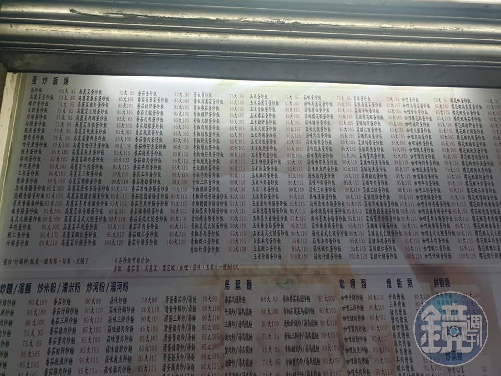 這家炒飯專賣店位於台北市中正區,從菜單可見,這家店光是炒飯就超過200種,除了常見的火腿蛋炒飯,還有高麗菜、番茄、青椒、玉米、蒜味、咖哩、櫻花蝦等系列,口味相當多變。