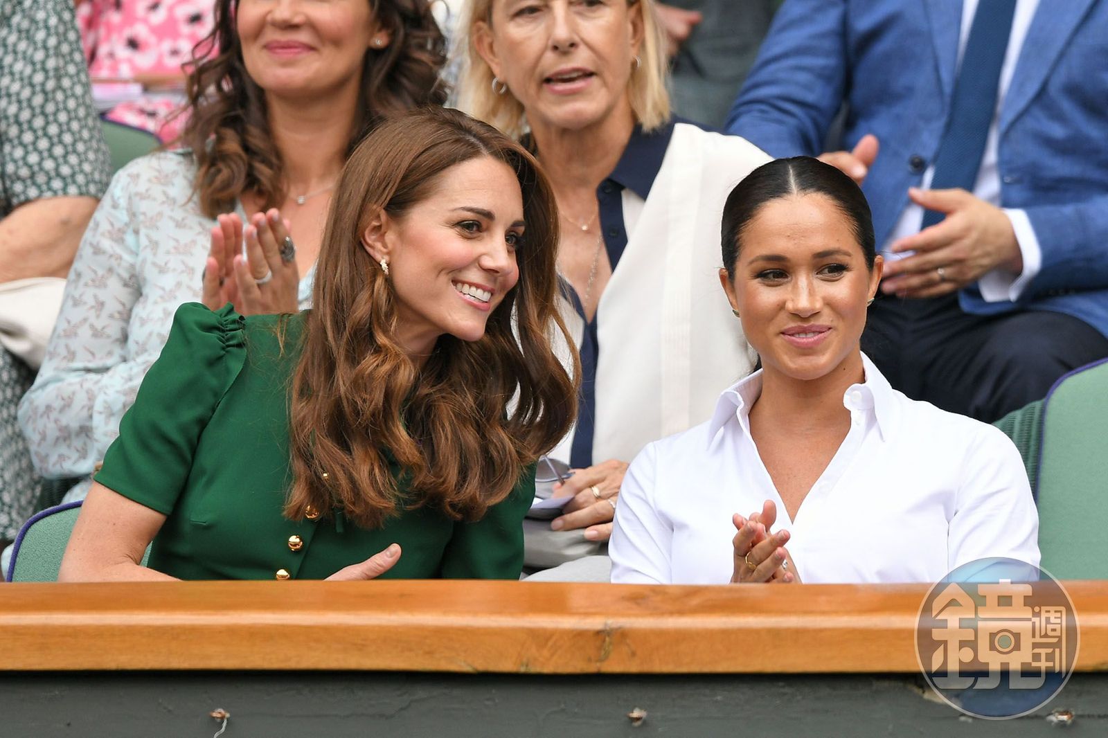 梅根(前排右)結婚後與大嫂凱特王妃(前排左)出席許多場合,曾一起看溫布頓決賽。(翻攝Wimbledon臉書)發布時間:2021.03.08 18:36 臺北時間