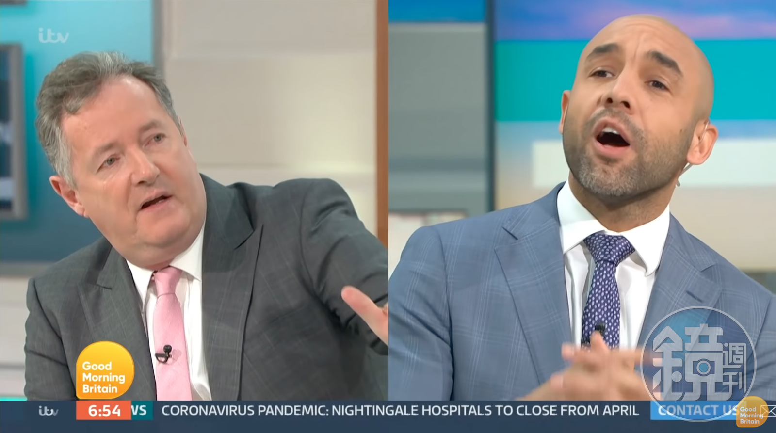 英國晨間節目主持人皮爾斯摩根(左),因在節目上批評梅根,與氣象主播艾力斯(右)引發針鋒相對。(翻攝自Good Morning Britain官方YouTube)發布時間:2021.03.11 12:05 臺北時間