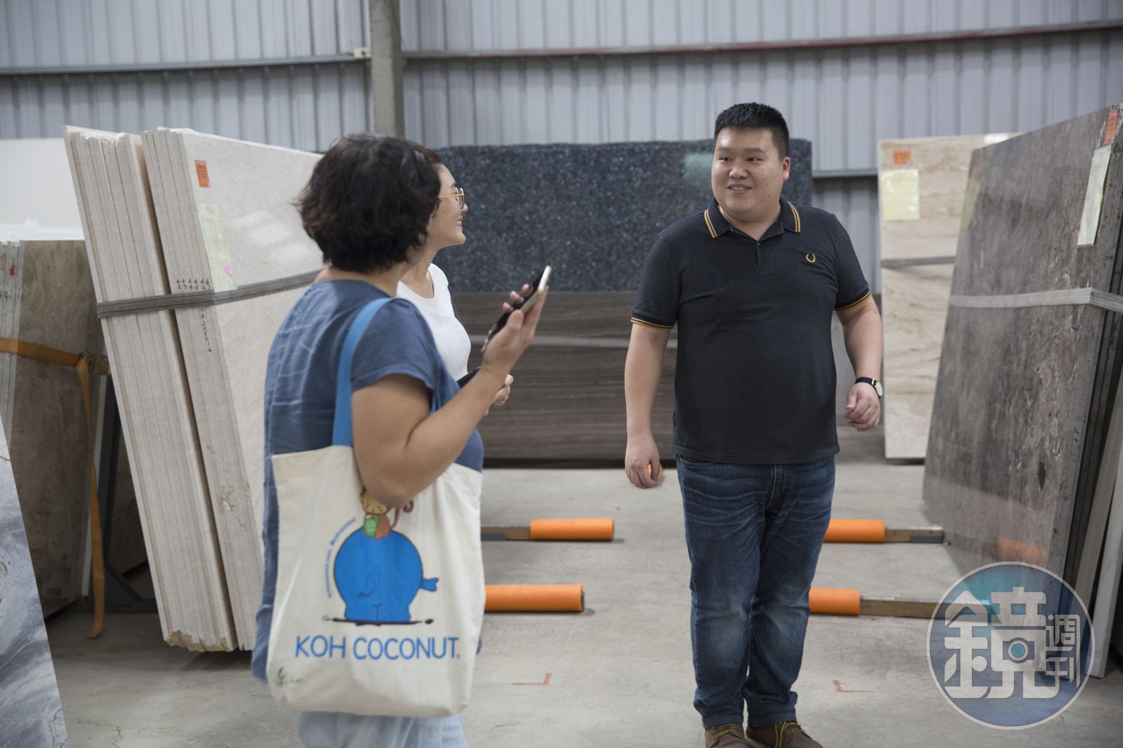 身為高得貿易第二代,28歲的張敬偉從小與石頭為伍,「我讀大學的時候是沒有暑假的,都要去石材加工廠或礦山實習。」早期父親張泰西仍從軍職,他總見母親為工作忙到半夜,大學時期就自願幫忙。