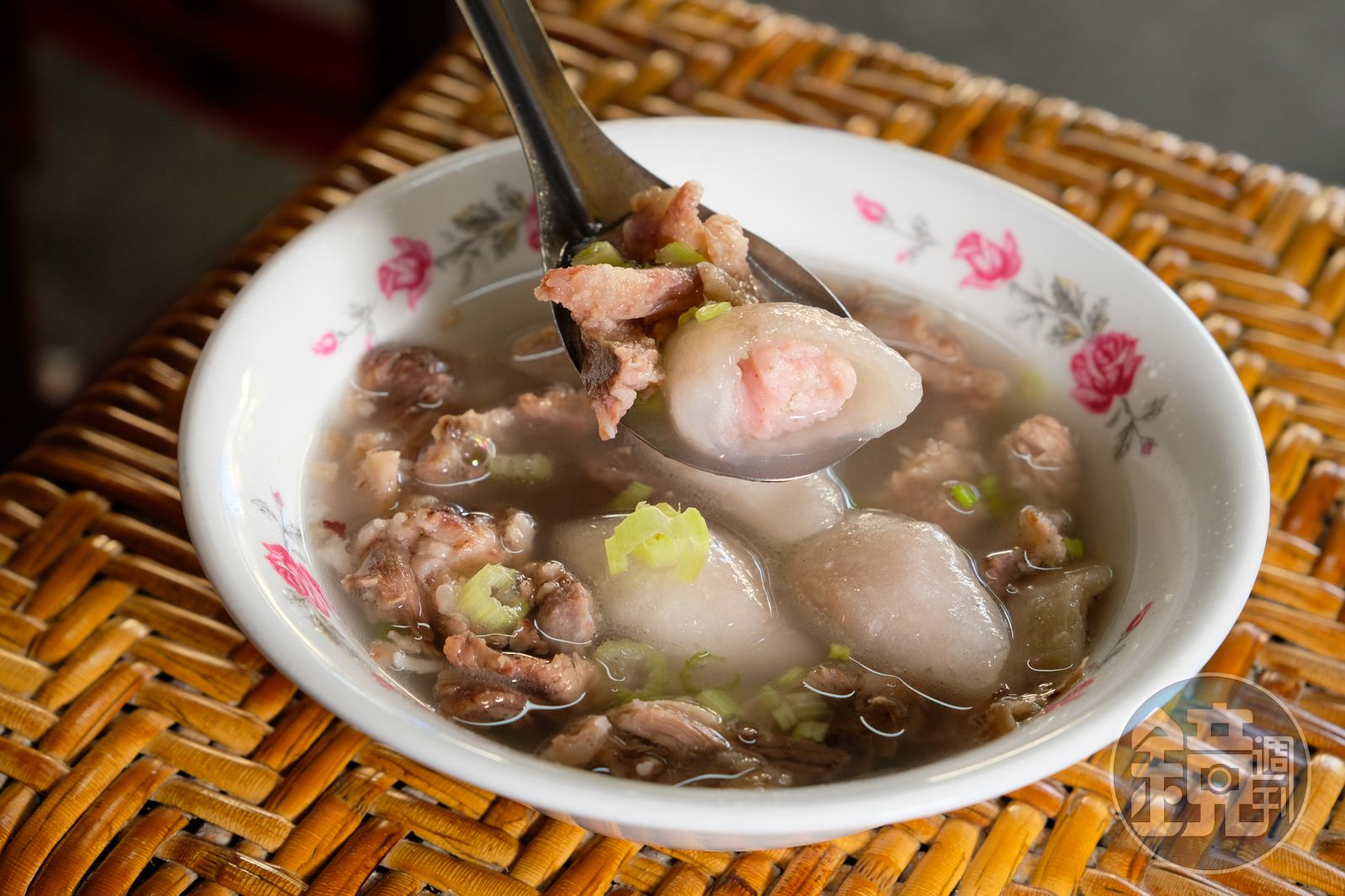 水晶餃外皮微透明,非常Q彈,豬後腿肉塊內餡,肉感實在、肉汁豐富,蔡炯忠提到,在曾祖父的時代,由於早期物資缺乏,為了增加肉味,會在湯裡滴上幾滴豬油,現在比較幸福,可以在湯裡加點骨邊肉,添上肉香,內行的老饕來,一定這樣點。