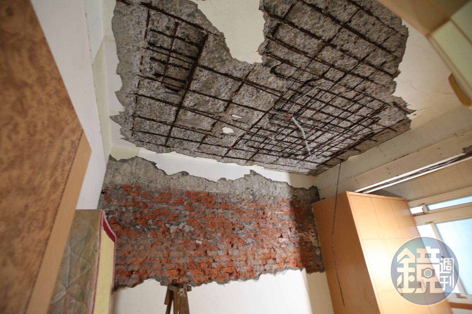 此外,住戶A小姐與B小姐的家中,天花板的水泥塊如下雨般崩落在地,住戶擔心自己被砸到,必須小心閃避,並用推車盛載這些掉落的水泥塊;由於水泥塊天天崩落,甚至還能看到鋼筋外露,屋況只能以慘烈來形容,幾乎不能住人。