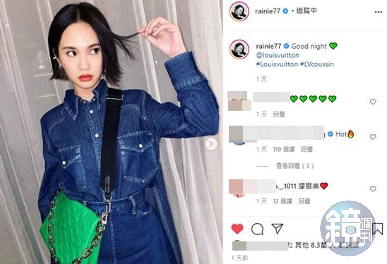 楊丞琳背著LV的Coussin手袋,在IG上跟粉絲說晚安。(翻攝自楊丞琳IG)發布時間:2021.03.15 17:41 臺北時間
