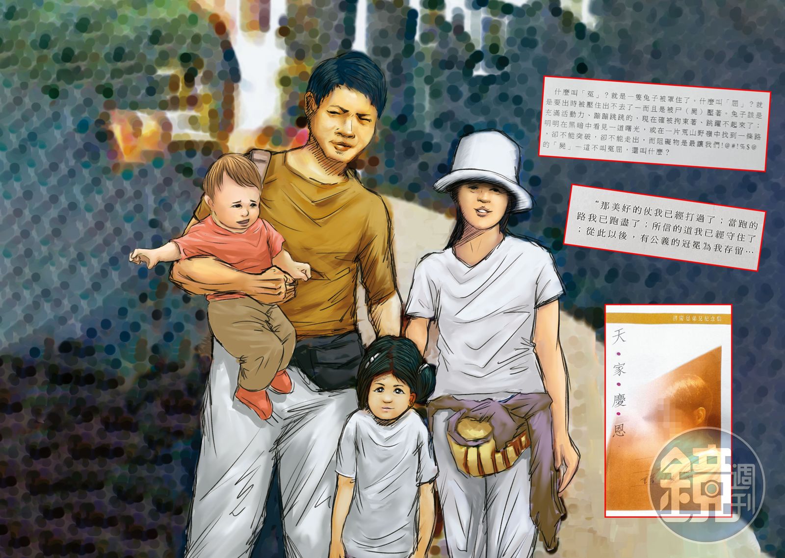 這本名為「天家慶恩」的紀念文集,一開始就引用《提摩太後書》寫道,「那美好的仗我已經打過,當跑的路我已經跑盡,所守的道我已守盡;從此以後,有公義的冠冕為我存留,就是按著公義審判的主到了那日要賜給我的」,一席話道盡親友們對他抑鬱而終的憤慨。