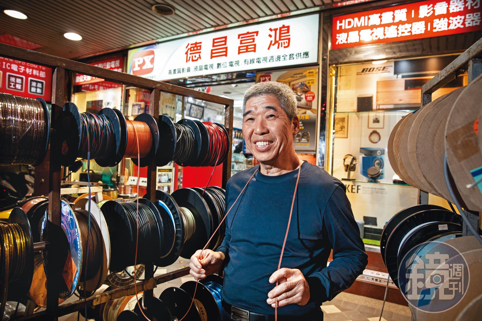 「店長的哥哥、弟弟也在我們家族企業上班,以前我們是德昌、德明、德福、德和,有貿易公司、電子工廠、門市、代理部門,十幾個兄弟分家之後,德昌分給我爸爸。」今年41歲的現任老闆湯國賓解釋,父輩老家在楊梅原來務農、種茶,最早是姑姑與一個阿伯在中華路開店,人手不夠,「把兄弟姊妹像粽子一掛人拉上來,現在中華商場散出去跟電子業相關,姓湯、溫、吳的,多是楊梅來的客家人。」