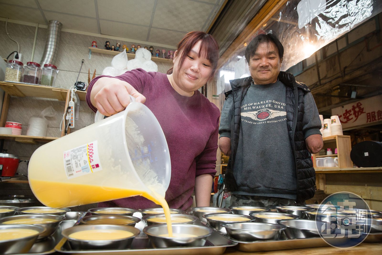 「還沒完全放心啦!」看著林恩雅熟練地忙進忙出,林建民還是忍不住想去動一動鍋子,跟客人聊聊天,詢問意見。到這年歲,終於該還的都還得差不多了,他只希望自己和家人的未來可以平穩,女兒的這杯杏仁茶能熬煮得順利些,別像他用半生乖舛,才換來這平淡的幸福。