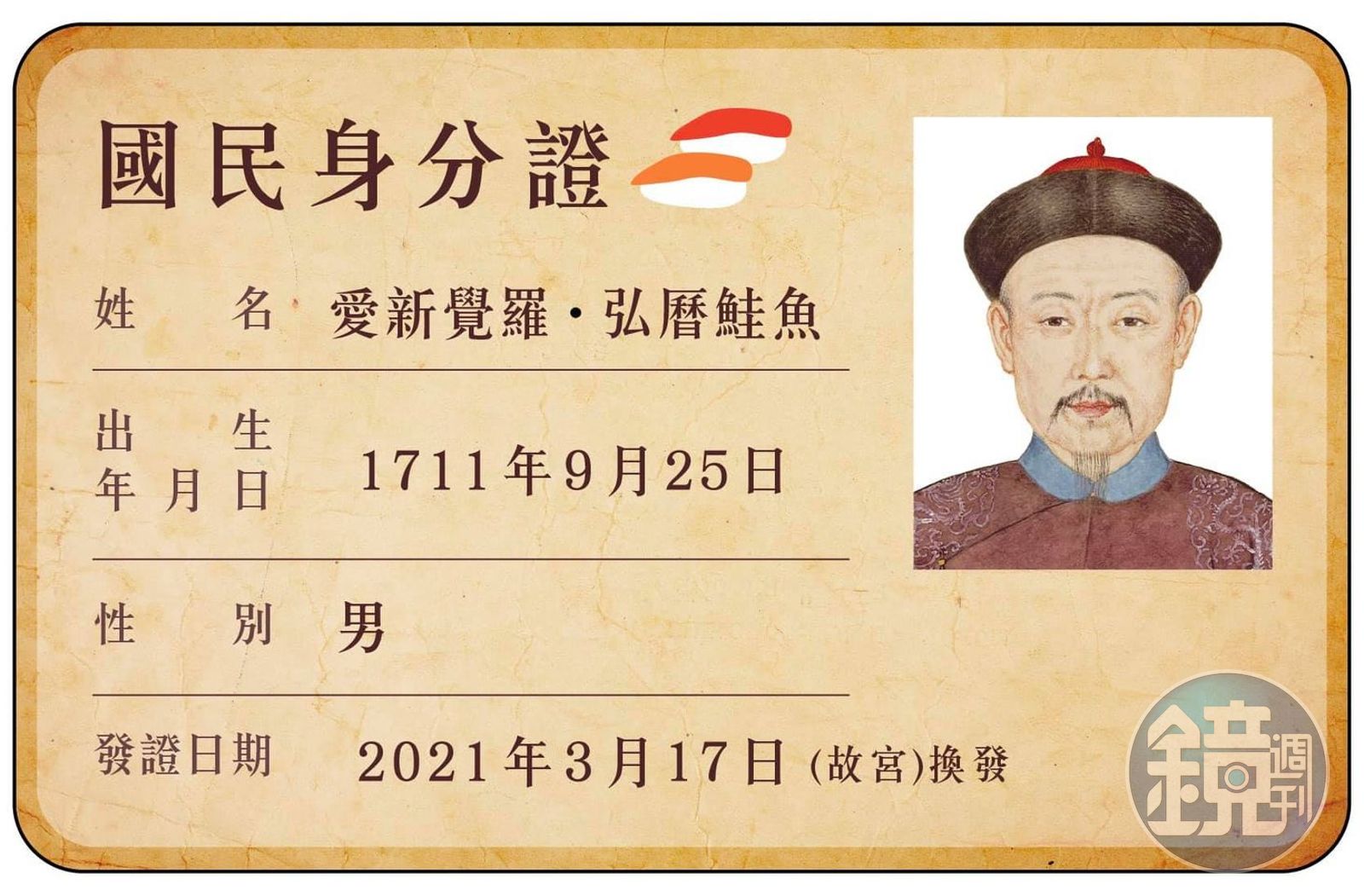 日本迴轉壽司壽司郎推出2天限時活動,姓名有「鮭魚」者免費用餐,引發全台改名風潮。故宮精品粉絲團小編也跟風幫乾隆皇帝改名,曬出身分證還不忘笑說「誰要跟?出巡順便吃鮭魚」,不過立委吳思瑤就發現證件上的亮點,直呼「弘曆鮭魚你天秤?」