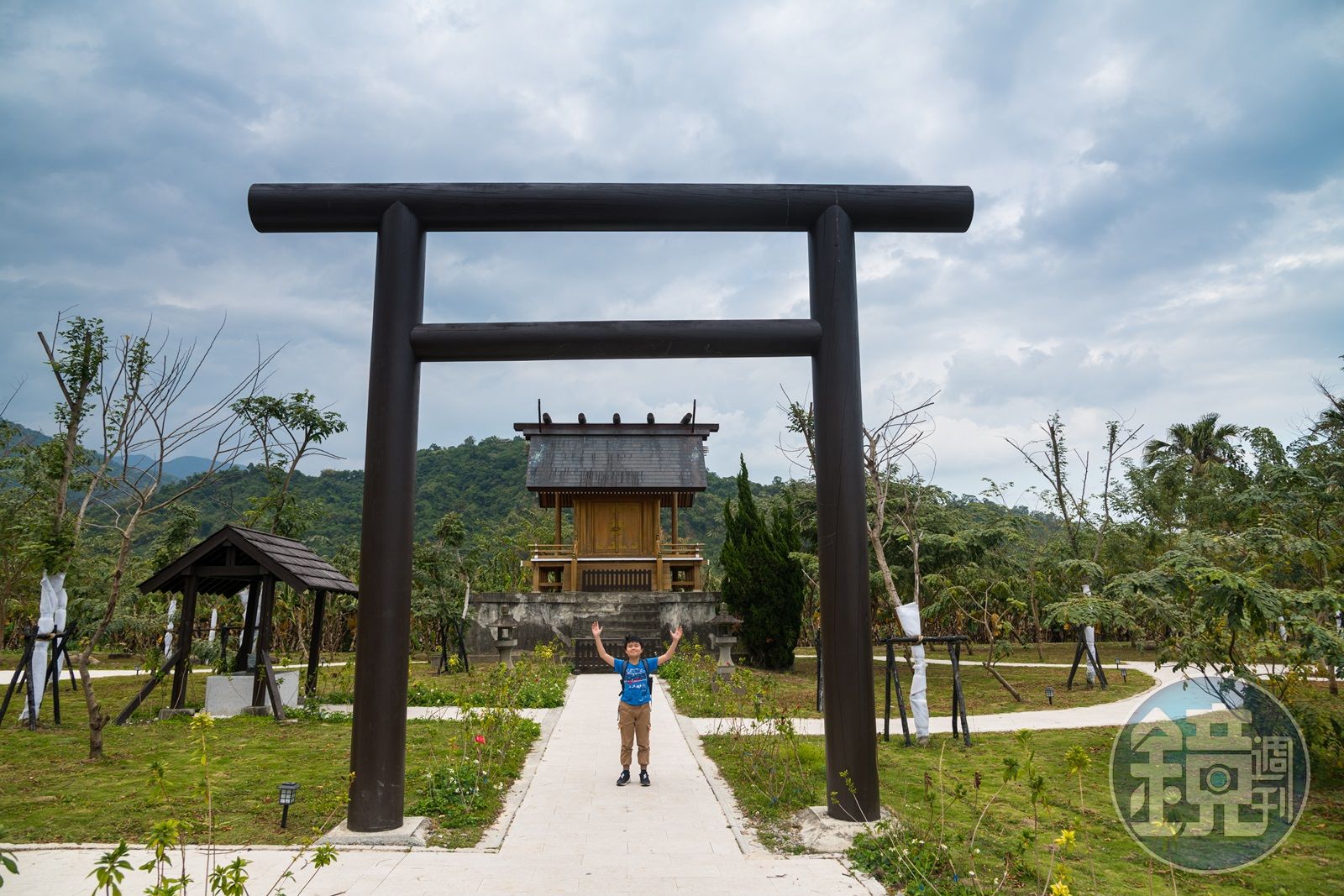 首先來到近來的網紅景點「鹿野神社」,戰後居民將神社拆除,改為「崑慈堂」,近幾年又從日本請來神社工匠指導,在原有的基座上以檜木建造本殿、鳥居及手水舍,成為中日神明和諧共存景象。崑慈堂外的廣場上,有許多老茄苳及百年苦楝樹,因著證嚴法師曾在此修行3個月,而稱為慈濟樹。