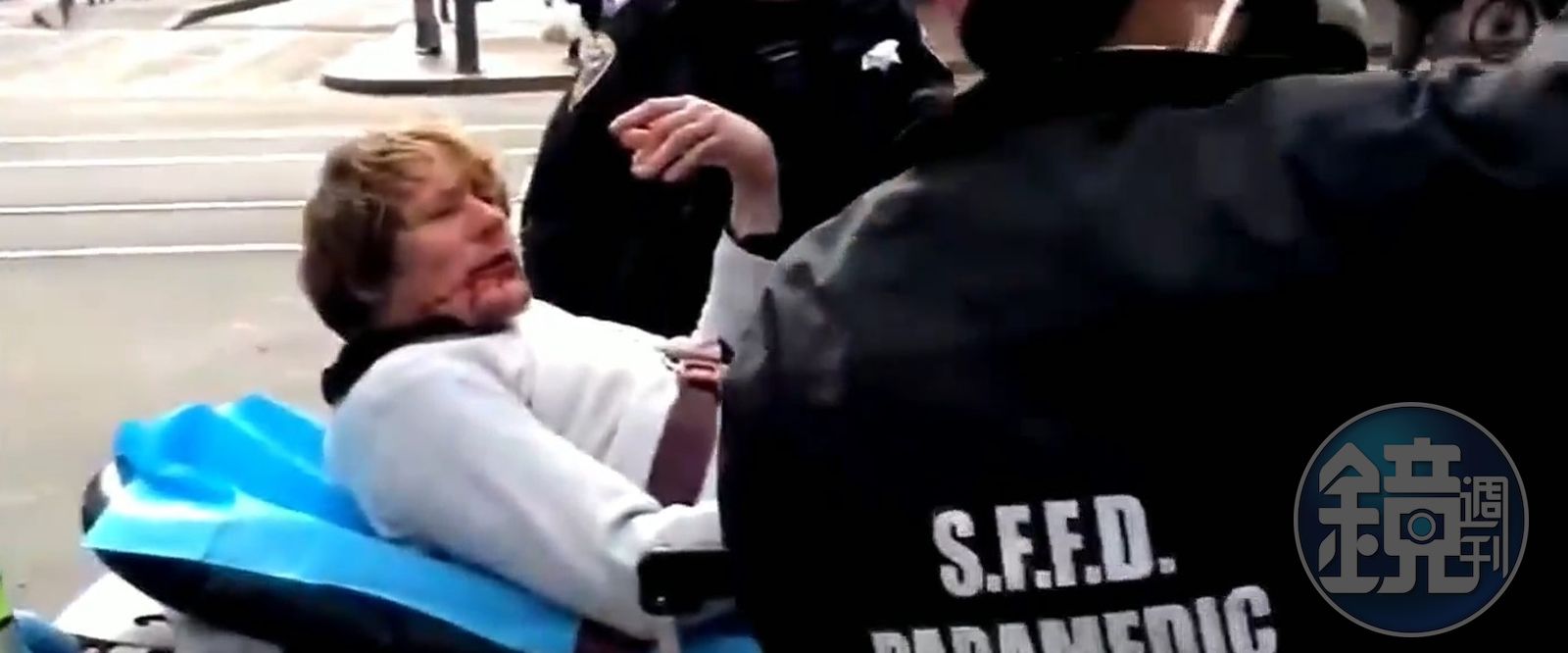 根據CBS舊金山頻道的畫面顯示,事發後襲擊者被銬在擔架上,臉上血跡斑斑。老奶奶則口操粵語向現場警察哭訴「他是個混蛋」「他欺負我」,並且質問襲擊者:「為什麼打我?」美國當地媒體報導,舊金山警察還在調查事件起因,但沒有透露襲擊者的犯案動機,尚無法確定是否與種族襲擊有關。