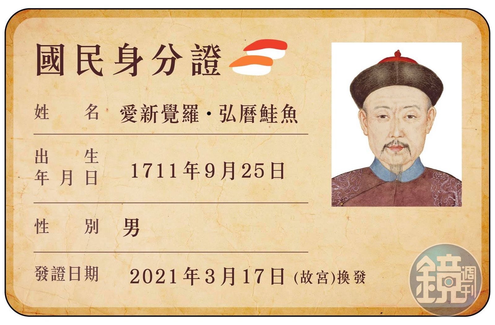 臉書粉專「故宮精品」17日貼出乾隆皇帝的身分證,但把他的名字「愛新覺羅‧弘曆」改成「愛新覺羅‧弘曆鮭魚」,還順便宣傳以乾隆南巡為主題的桌遊,「出巡順便吃鮭魚」,跟風這波改名潮,讓不少網友大讚幽默,還引來不少政治人物留言。