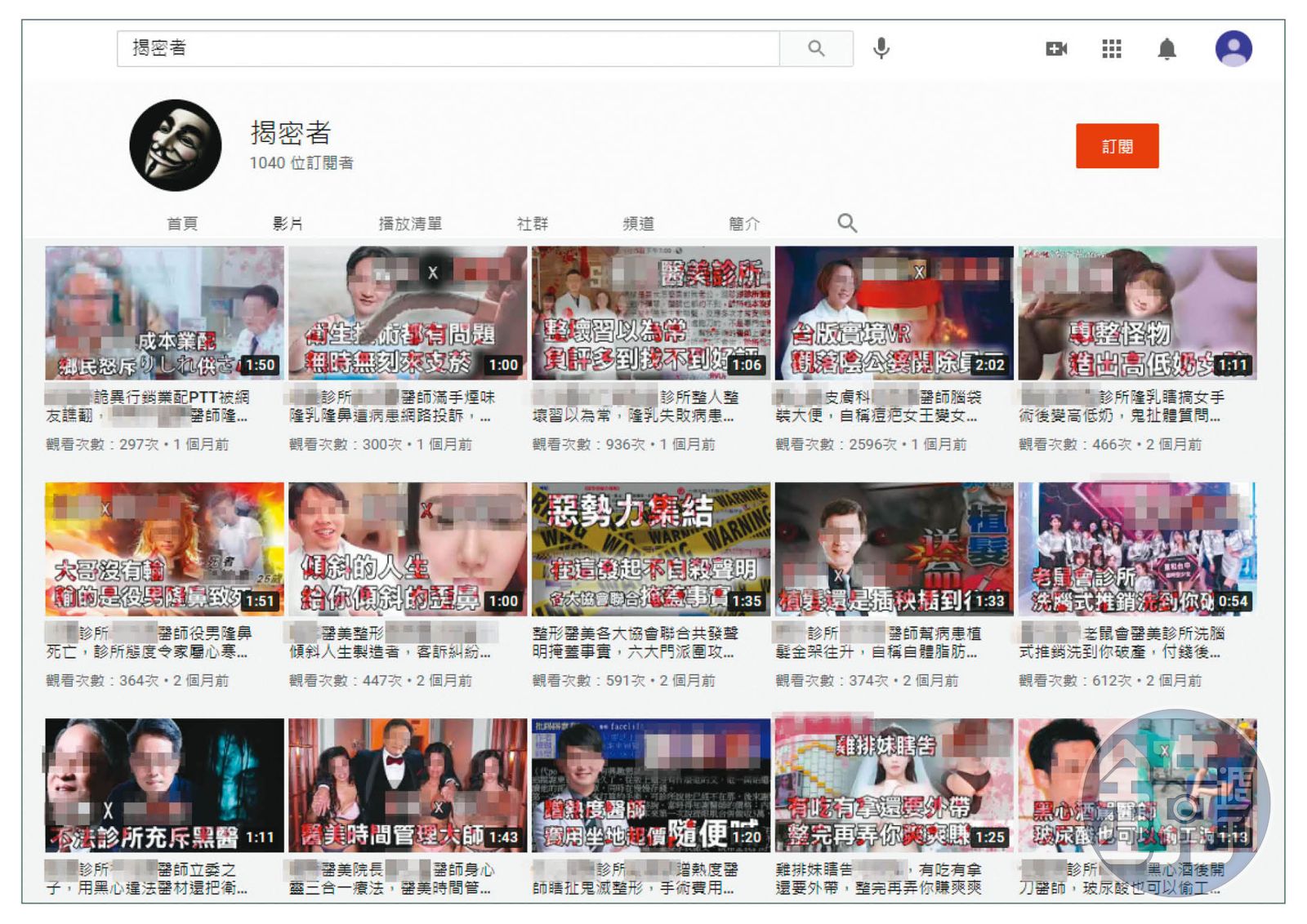 台灣美容外科醫學會理事長蔡豐州指出,如今還出現一個YouTube頻道「揭密者」,專門收集靠北醫美的抹黑文剪輯成影片,有家全國連鎖的知名醫美診所曾收到揭密者來訊,一開口就勒索20萬元的影片下架費,對方疑似是中國人,指定要以支付寶交付款項,還大嗆:「台灣人智商都比較低吧,哈哈,真替你們台灣的中文教育水平感覺擔心。」並附上一個笑到流眼淚的表情符號。