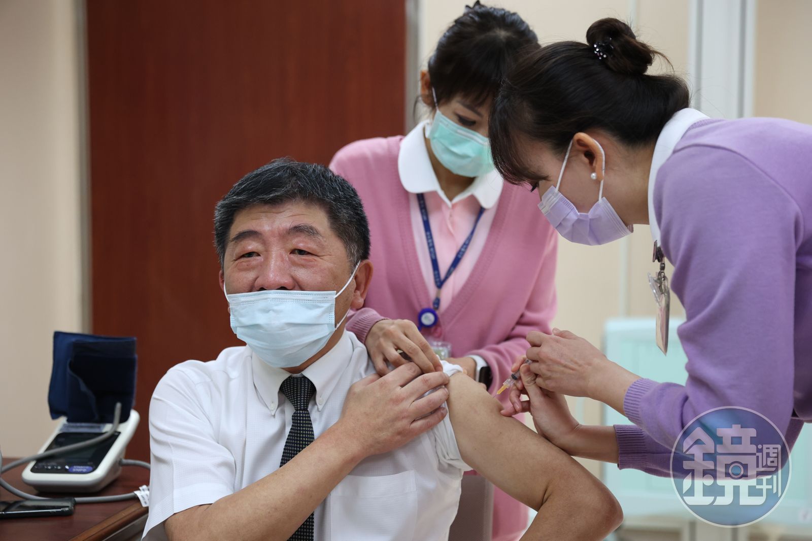 陳時中今晚出席衛福部疾管署的「分秒必爭 結核消聲」記者會後,他接受媒體聯訪時透露,昨天接種疫苗後,施打處手臂的肌肉有些緊繃、不舒服,可能是心理作用,到了晚上10點左右有出現輕微發燒37.1度,凌晨時刻體溫還上升至37.4度,不過今天起床已恢復到36.4度。
