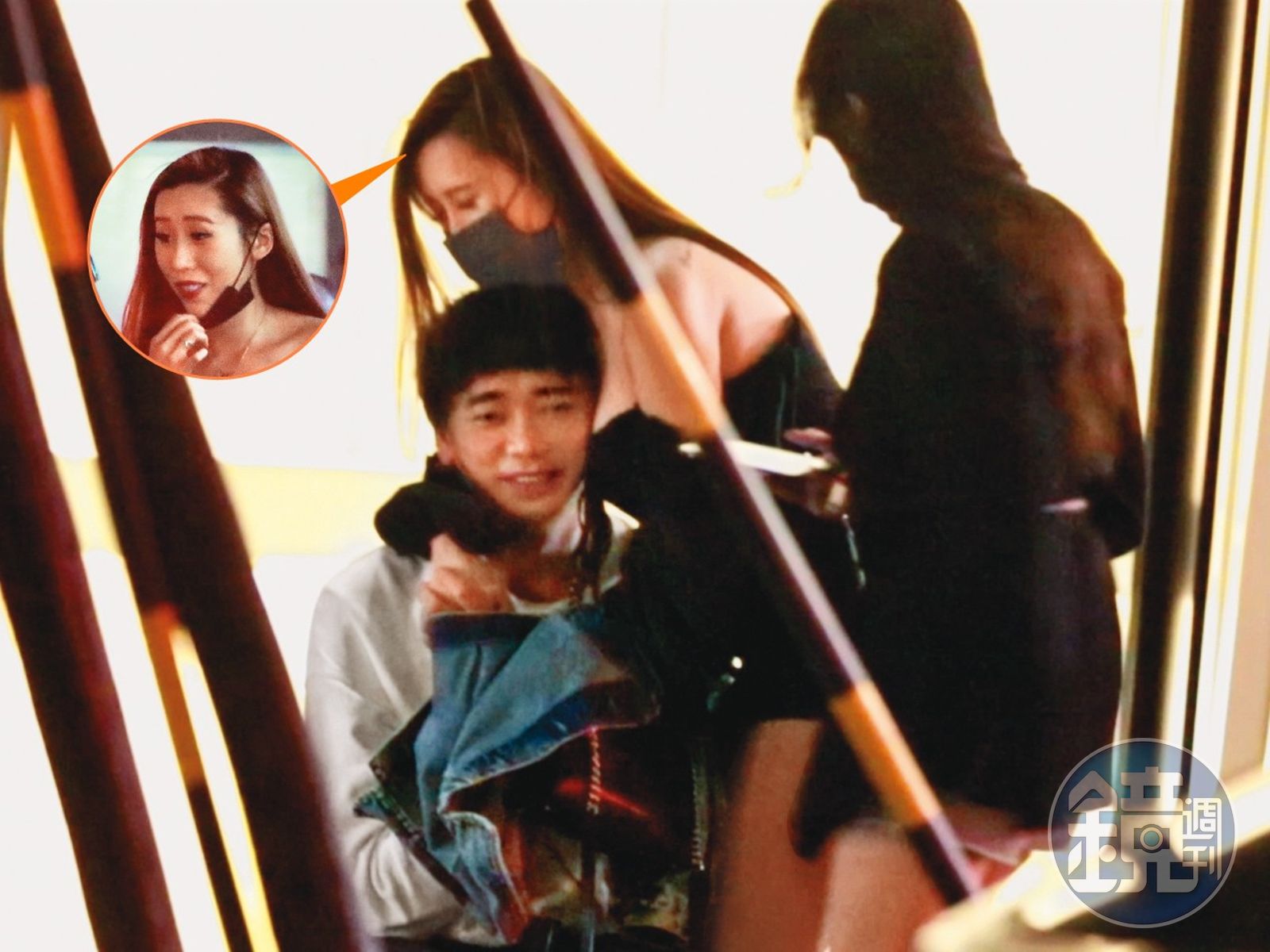 由此可知,蘇見信像個被緊緊夾在三明治中的餡料,達到神智茫然的境界,雙手跟辣妹們十指交纏到個不行,男性保安人員也加入陣容,讓此街頭即景看來手忙腳亂;尤其蘇見信在醒後到底還會不會保有記憶,也都相當值得存疑與事後複習。總之在本刊的鏡頭下,蘇見信走出來後,雙腳已經癱軟,只好把頭暫靠在身邊戴著口罩的辣妹胯間。