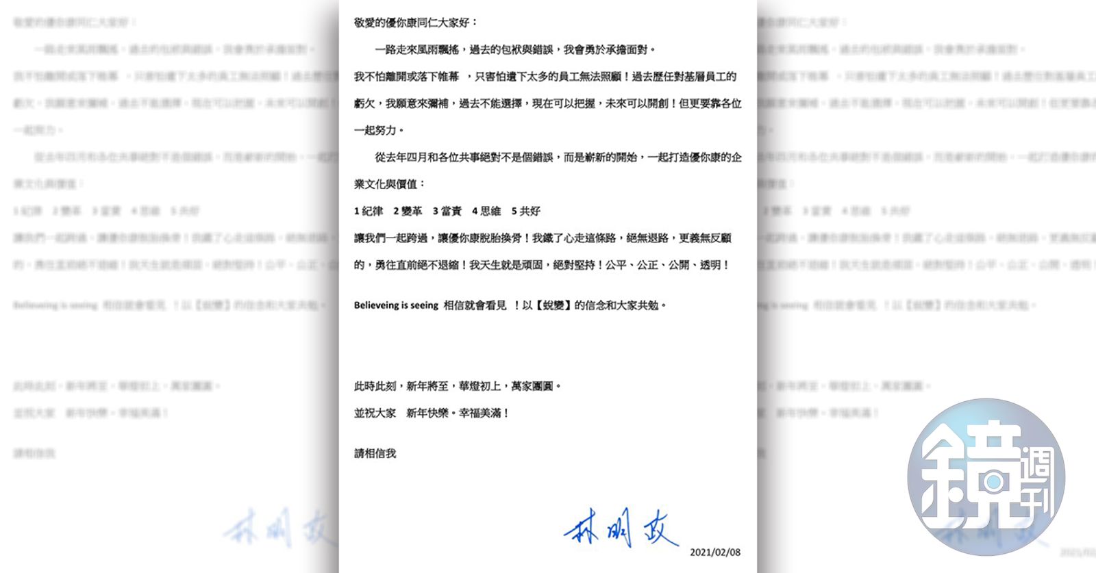 隱形眼鏡廠優你康將在4月9日改選董事,卻在3月11日公告獨立董事提名名單時,爆出5人搶3席的激烈戰況。現任總經理林明政表示這是理念之爭,親自掛帥出征,撰寫一封致員工、股東信,透露優你康將揮別過去包袱,藉由打造紀律變革的經營理念,鼓勵員工堅持下去,也希望能爭取所有股東支持。