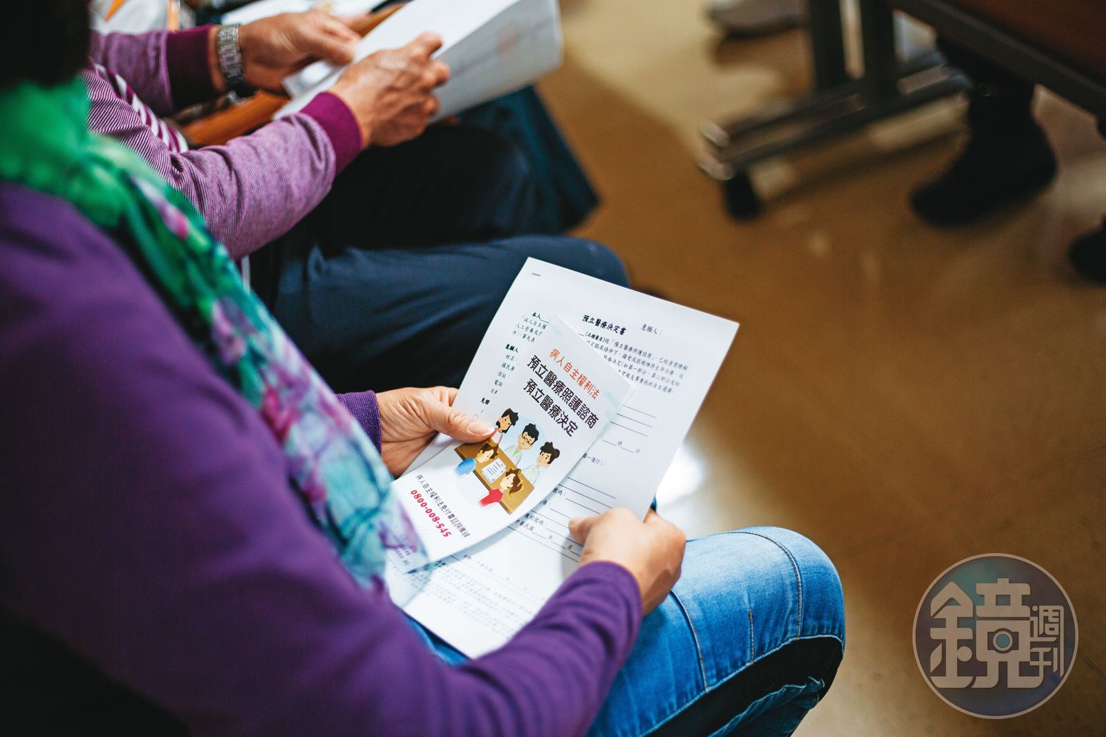 「先生臥床第8年,我第一次簽他的放棄急救同意書,我哭得很傷心,因為我自己也有點撐不住,我很不願再回到當年憂鬱的狀況。」鈺如說,她才忍痛將明瑋送到養護中心。鈺如很難忘記,第一次簽完先生的《不施行心肺復甦術暨維生醫療同意書》,打算放棄急救後,她回公婆家把藏在心裡的話跟公公說,「我哭著跟他說:『他太辛苦了,我們就放他走吧。不要再這樣了。我覺得我好對不起他。』我公公也哭。』」