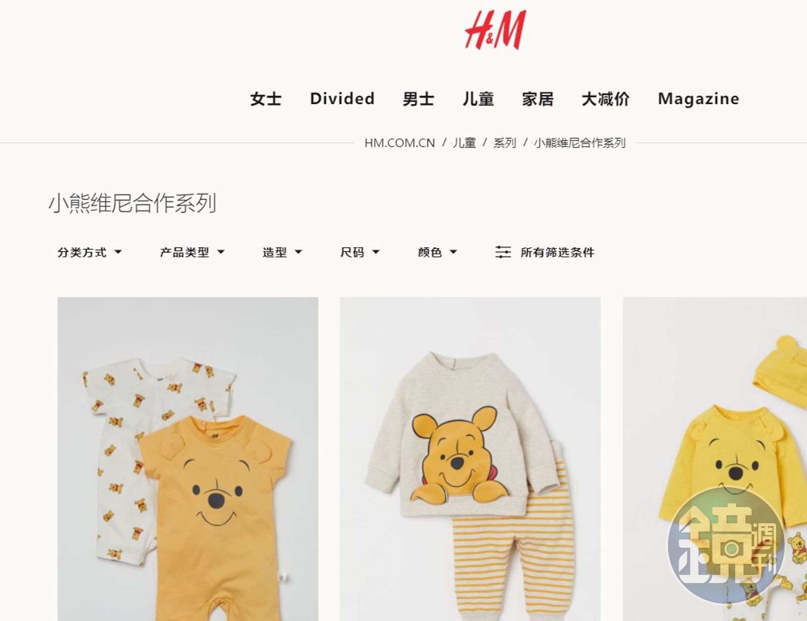 H&M遭到抵制後,在淘寶、天貓等平台的官方帳後都被下架,但官網似乎暫時逃過一劫,就有網友發現H&M在不久前才上架小熊維尼聯名童裝,仍在中國官網持續販售,網友們笑稱「反正都要死,倒不如轟轟烈烈!」