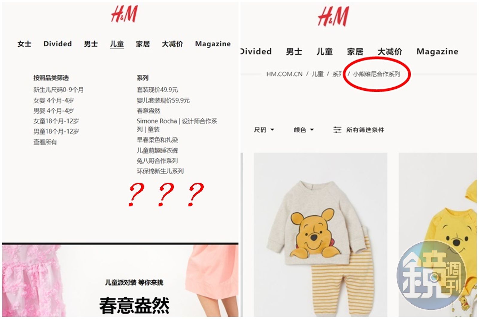 H&M遭到獵巫後,除了兩位代言人第一時間切割,在淘寶、天貓等平台的官方帳號都被下架,但官網似乎暫時逃過一劫,新品小熊維尼聯名童裝仍在中國官網販售,讓網友高喊新代言人就屬維尼了。