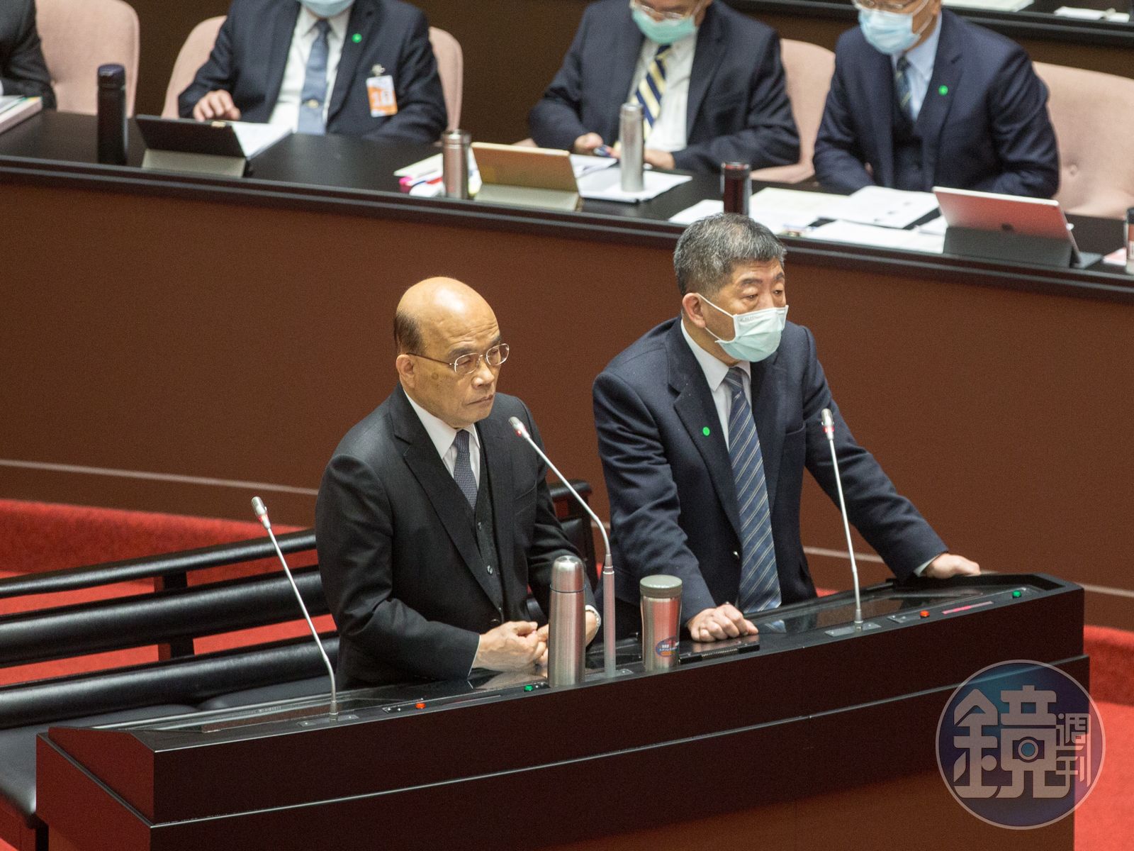 蘇貞昌與陳時中今雙雙赴立法院進行施政報告並接受質詢,質詢中國國民黨立委鄭正鈐就質疑目前國人對於疫苗的信心度不高,不僅醫護僅有3成願意施打,列在第一級風險的施打名單的人接種率也僅有8.37%,是否民眾並沒有受到院長帶頭施打疫苗的鼓舞?