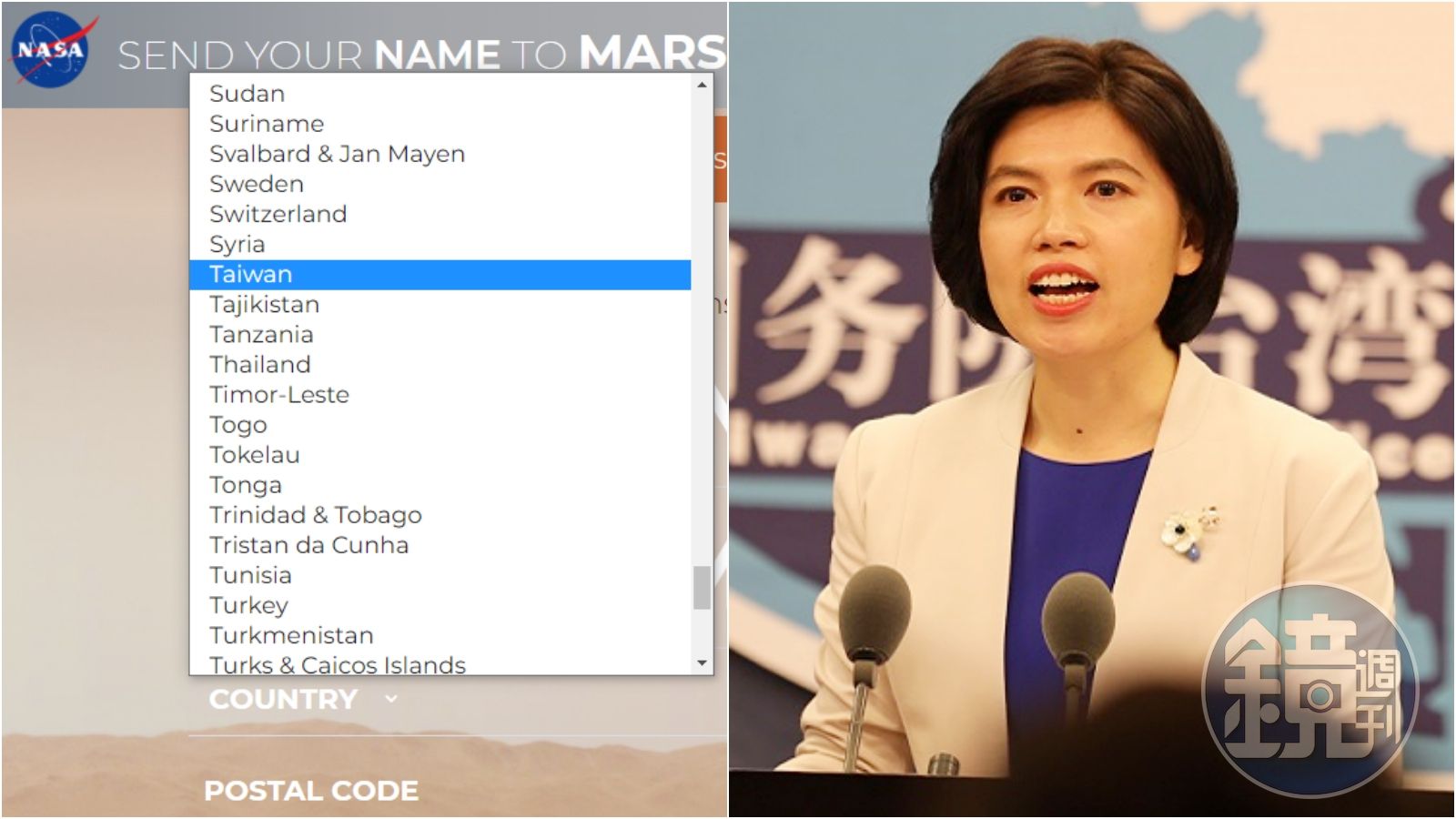 現在只要上NASA的官網,填好基本資料,即可做出一張虛擬的「火星船票」,讓你的名字跟著太空船一起飛上火星,但日前該活動在中國網路間掀起熱議,因為NASA在「國家」(Country)的選項中,除了中國之外,也放入了香港與澳門,但都有特別標註為中國特別行政區(SAR China),唯獨「台灣」就只是台灣(Taiwan)。