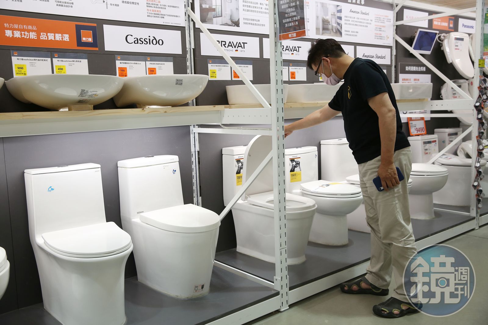 特力屋衛浴達人黃雅琪表示,家裡如果是舊式馬桶,建議加裝兩段式沖水配件,一樣可依大小號需求按壓把手控制出水,平均能讓用水量省下近半,「這配件市售不到260元,如果可以自行安裝很經濟實惠,需要到府安裝的話,連鎖賣場工錢透明,約僅500元。」
