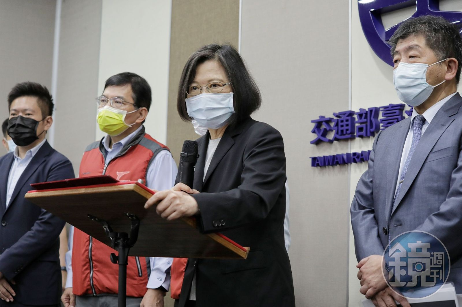 蔡英文指出,在事故發生後,第一時間成立一級災害應變中心和前進指揮所,統整所有搶救事務。目前消防、警察、空勤等各單位都積極投入救難,也指示國軍來支援。另外,謝謝許多縣市派遣搜救隊趕赴花蓮。救難第一,也要請所有參與救難的同仁持續努力。