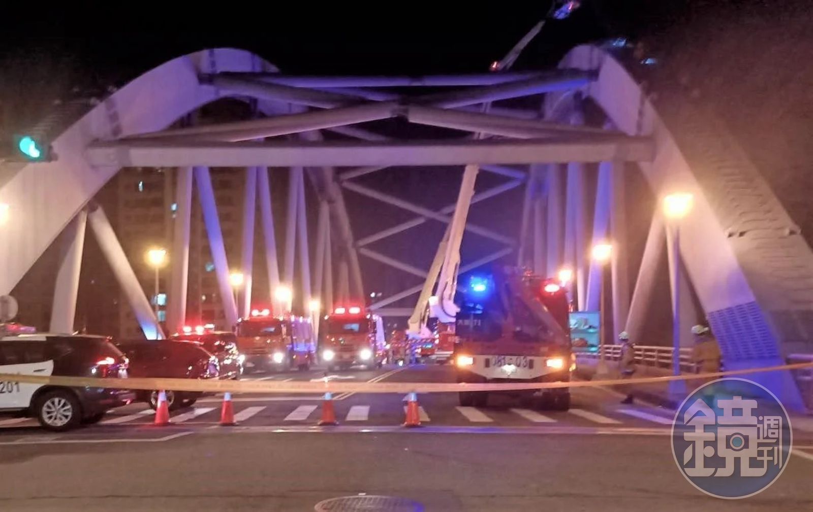 由於發現民眾擔心他發生意外,立刻打110,並轉報119。警消立刻出動3個消防隊、8車32人,由中山分隊小隊長鄭鋒霖帶隊前往搶救,消防隊到場後發現,該名男子越爬越高,直到超過20公尺高,立刻請求雲梯車及特種救助隊支援,並在橋下方架設氣墊,以防男子摔下直接落地。