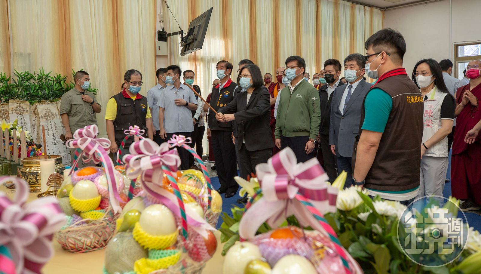 據《自由時報》報導,蔡英文中午在交通部長林佳龍、衛福部長陳時中陪同下前往花蓮市立殯儀館慰問家屬,蔡英文到台鐵設置的家屬休息區致意,由林佳龍代表交通部及政府慰問,林佳龍說出「對不起」後,與其他兩人向家屬深深鞠躬,表達深沉的悲痛及歉意。