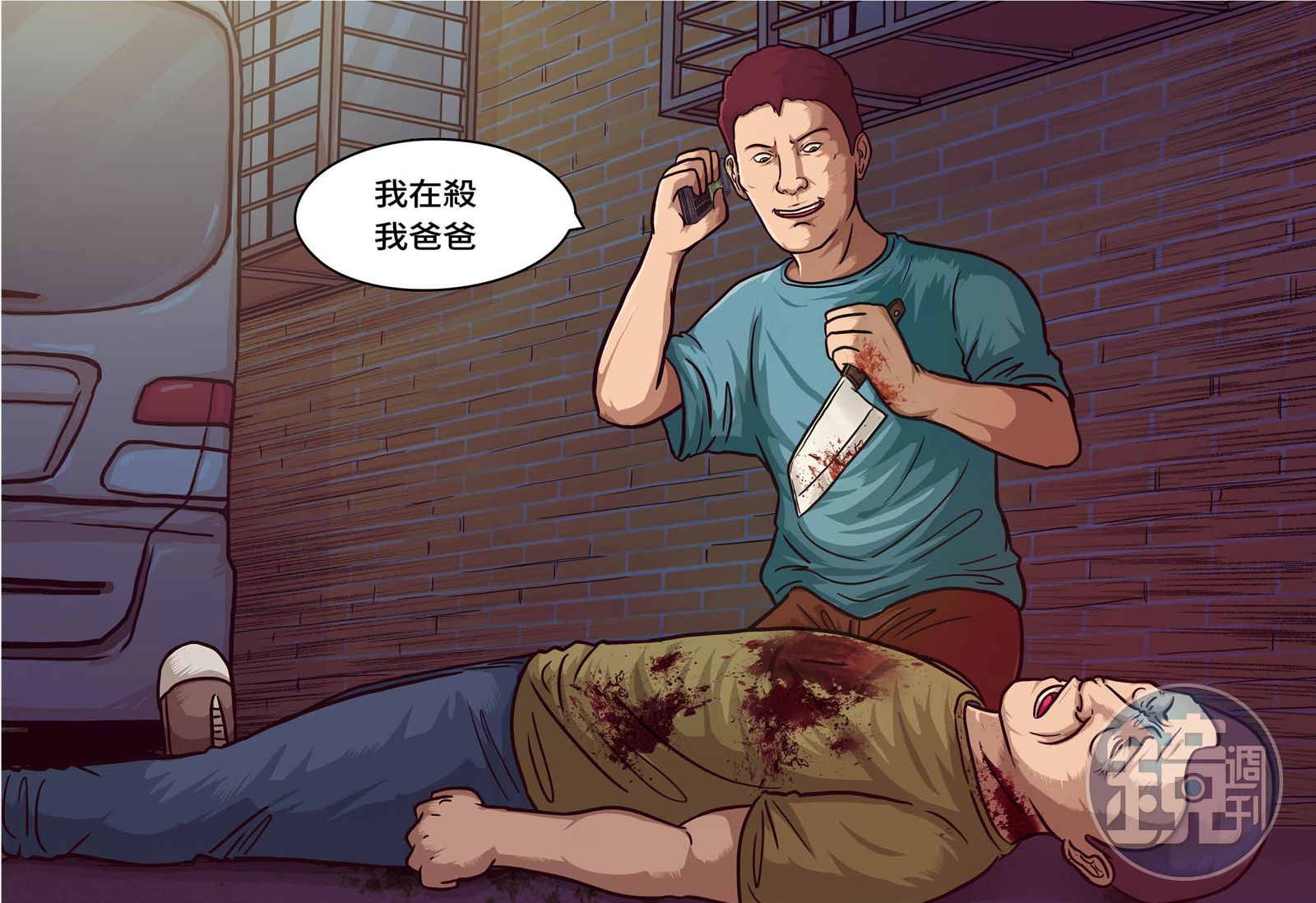 時任新北市警局新莊分局偵查隊小隊長的徐子胤,獲報趕往現場,他回憶說:「當刑警這麼久,那次是我看過最驚悚的一起命案,死者的臟器外露,脖子幾乎被砍斷,實在很難想像,怎麼會有人這樣對待自己的父親!」
