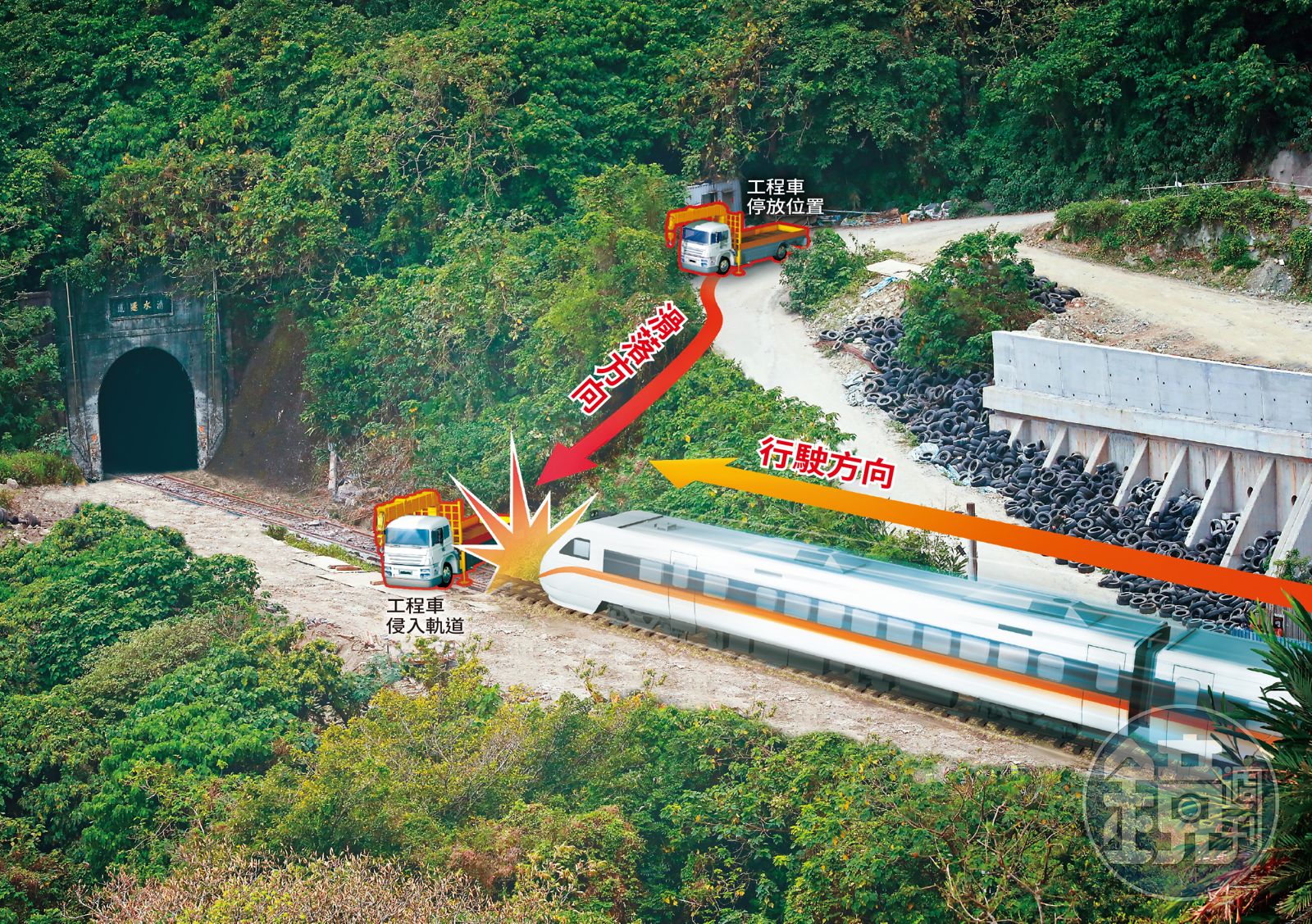 知情人士告訴本刊,李義祥當天上午並非將工程車停好並拉上手煞車去巡視工地,其實,他和其他工人正在工地調配機械歸位,雖未違約施工,但當他利用工程車吊臂吊掛大型器具時,可能因操作失誤或鋼纜鬆脫,導致器具突然重重摔落地面,工程車也因此跟著劇烈震動一下,未料,車子隨後就慢慢往邊坡滑落,在場人員來不及反應,工程車已橫躺在台鐵軌道上。