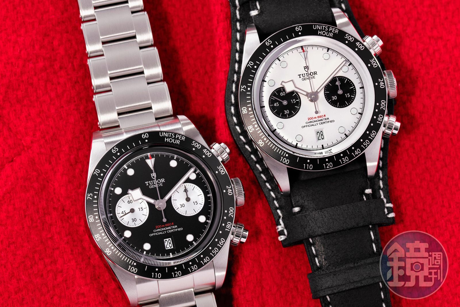 Black Bay Chrono此次帶來黑白熊貓面兩種選擇,型號為79360,也正式取代先前全黑面的79350。基本上此款式的規格與先前的79360相同,41mm 316L精鋼錶殼,裝載MT5813型自動上鏈機芯,動力儲存約70小時,通過COSC瑞士天文台認證,而且根據官方資料顯示,機芯經過重新配置,因而讓原本14.9mm的厚度降到14.4mm,配戴上會更舒適;除了更改為嶄新的配色之外,中央計時秒針的尾端也改成了紅色去點綴。有鏈帶、皮錶帶與織紋錶帶三種選擇,定價分別為NT$165,000(鏈帶)與NT$155,000(皮錶帶、織紋帶)。