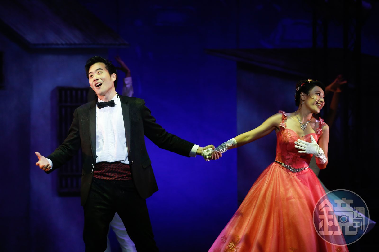 之前也曾經演過音樂劇,這次在《結婚!結昏?辦桌》唱歌跳舞的份量比較多,提前了4、5個月就開始練習唱歌和舞蹈訓練,王為苦笑:「唱跳歌手真的很不容易耶!」除了換氣點的掌握,吸氣的正確方式,肢體的延展等都得到很多指點;而練習到將方宥心扛起來的部份,曾一度因動作沒配合好,讓他傷到腰,「剛開始她不懂如何提氣,我就像拔蘿蔔一樣把她抱起來,還好後來請教了同劇的舞者,後面的排練就很順利。」