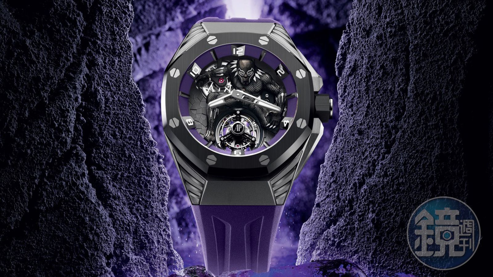 最後結果揭曉,AP選擇「黑豹」做為聯名主題,比起大家事前猜測的鋼鐵人或美國隊長,黑豹的形象確實比較低調奢華路線,沒有那麼主流或張揚外顯。鈦金屬材質搭配黑色陶瓷圈(如果特地研發出象徵瓦干達「汎合金Vibranium」的特殊材質真的會很酷),以紫色結合黑色為視覺主調,限量250只之外,還有一款錶殼和錶圈鐫刻象徵瓦干達皇室紋飾的白金特別版,在發表會直接進行線上拍賣,最後以520萬美元被一位中國藏家得標,金額將捐贈AP和First Book以及Ashoka兩家非營利組織合作,為中低收入戶青少年學生提供補助的專案。