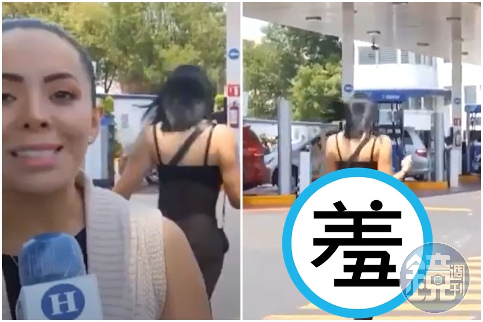 當時電視台正在報導關於油價的新聞,選在墨西哥市一處加油站進行連線,但連線後女記者開始播報約10秒鐘,恰好身後一名穿著性感的辣妹走進畫面中,攝影師的鏡頭竟跟著移動了起來,路人的好身材頓時成了播報焦點,女記者則是直接從畫面中消失。