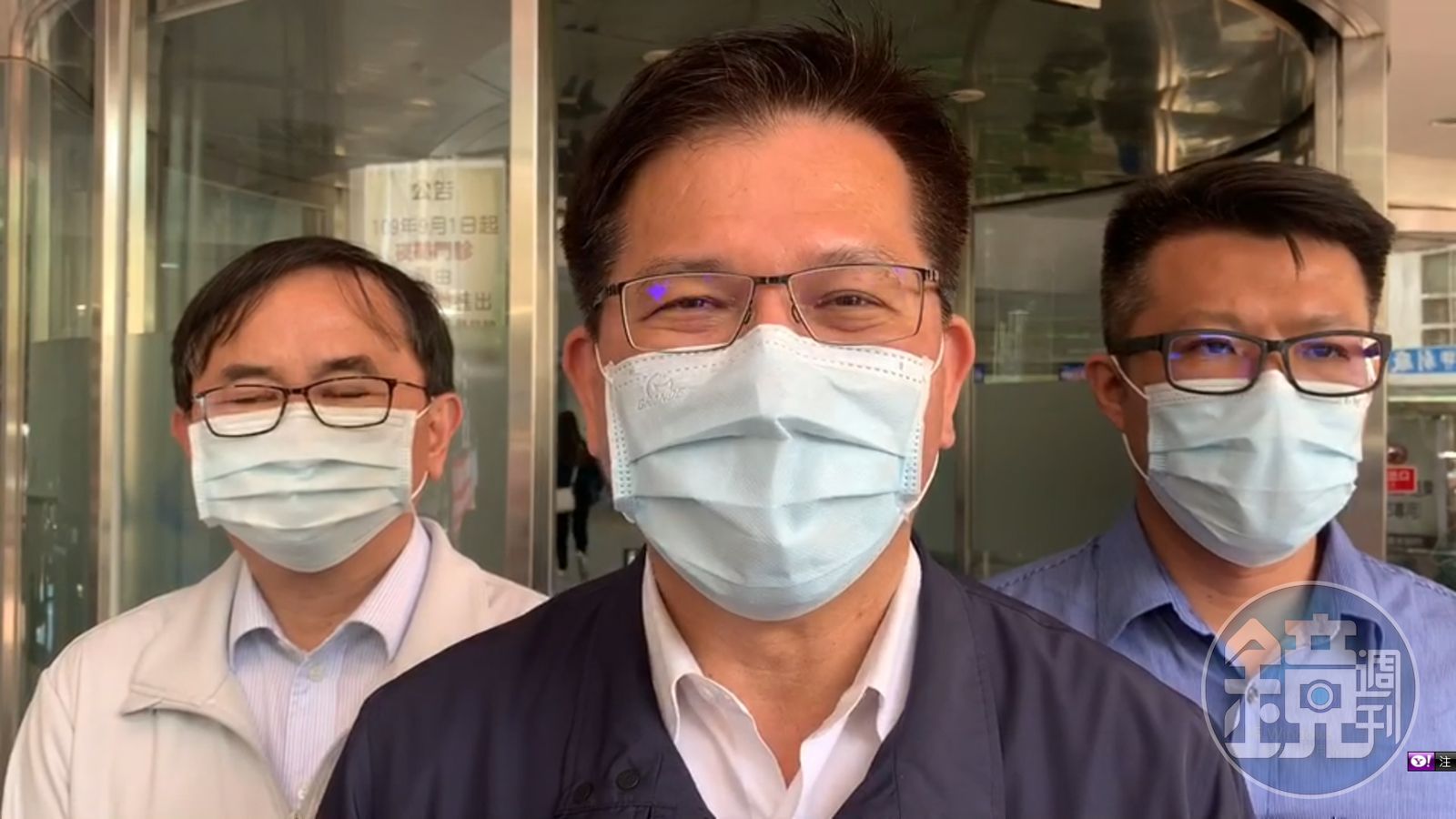 交通部長林佳龍(中)與劉櫂豪(左)、洪宗楷(右)共同接受媒體提問辭職問題,林強調「已經打包,沒有慰留問題」。(翻攝畫面)發布時間:2021.04.12 16:43 臺北時間