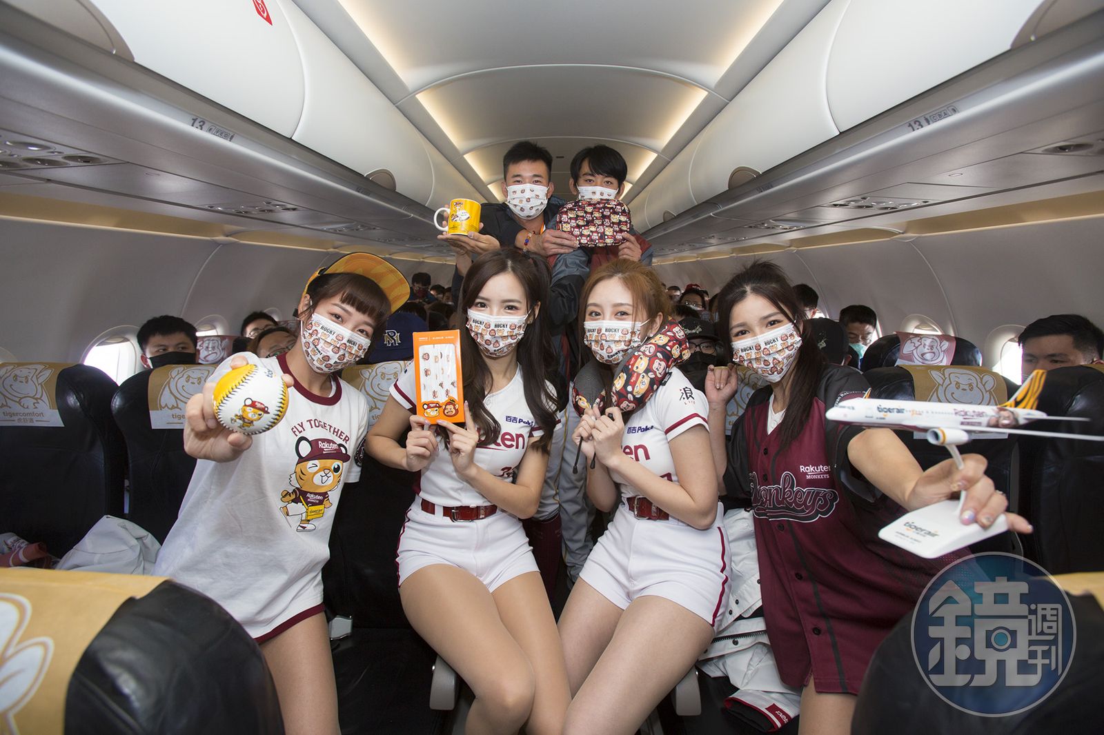 虎航樂天彩繪機4/11首航載客率9成5 王溢正、樂天女孩與球迷高空應猿同樂