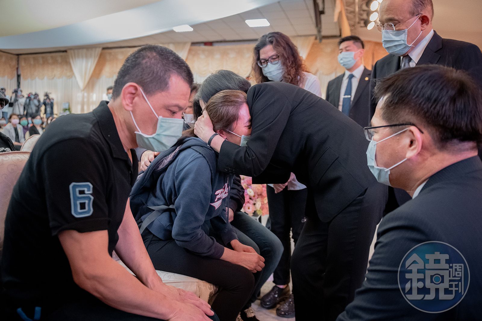交通部今日下午2時舉辦「0402台鐵408次列車事故聯合追思公祭」,林佳龍於1時39分抵達現場後,進入會場後神情肅穆地逐一蹲下向罹難者家屬致意,不時輕拍家屬的肩膀、手臂,不少家屬都難忍哀痛落淚;林佳龍隨後也對負責修復大體的76行者致上謝意。