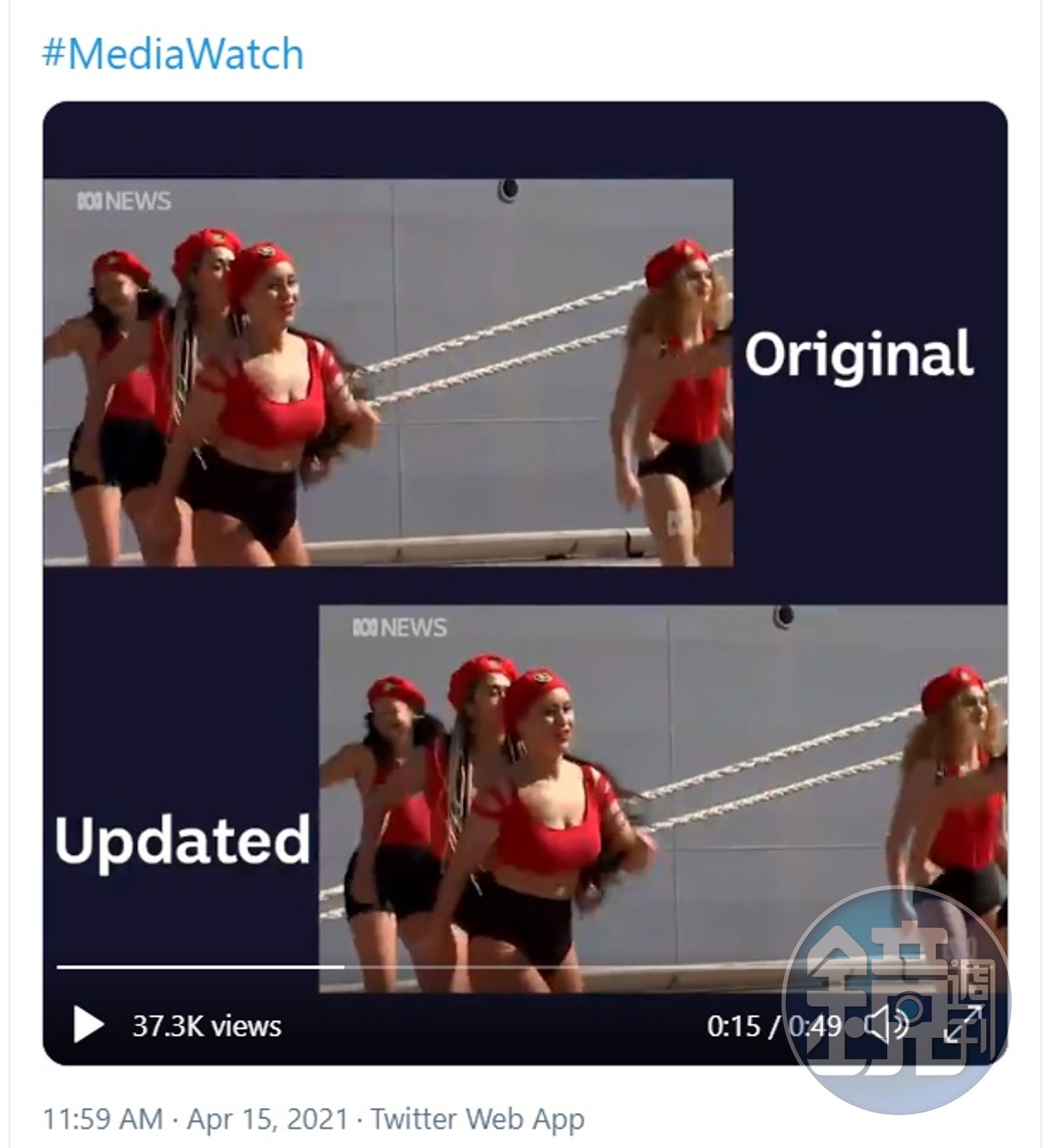 綜合外媒報導,澳洲國防部斥資澳幣20億元(約新台幣446億元)打造「補給號」,並在上週舉行成軍典禮,現場邀請舞團「101娃娃中隊」(101 Doll Squadron),擔任嘉賓炒熱氣氛。只見7名身材姣好的舞者,頭戴貝雷帽、穿著緊身衣,在「補給號」前大跳電臀熱舞,性感曲線一覽無遺。
