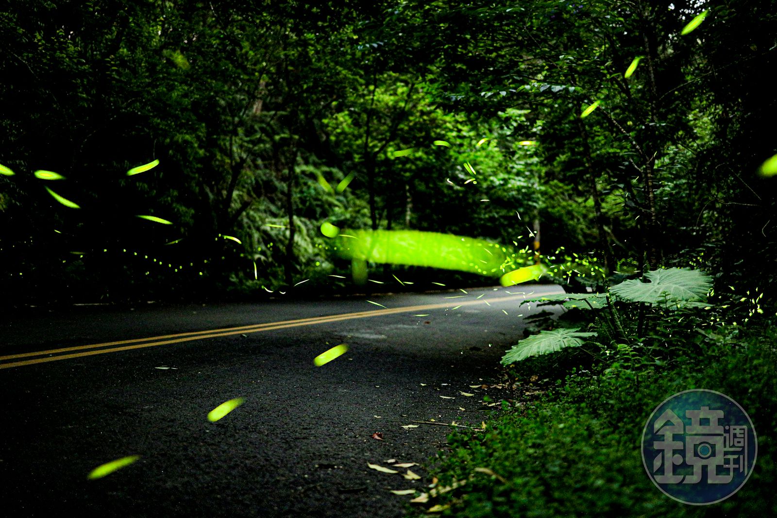 「有水巷」過去曾是聯絡魚池、埔里的台14線舊公路,隨著新道路開通,如今少了車水馬龍,僅有少數居民會由此通行,加上無多餘光害,每到4、5月便成了浪漫的賞螢大道。跟著導覽員,從巷口沿途步行約10分鐘,就能看到點點螢光。