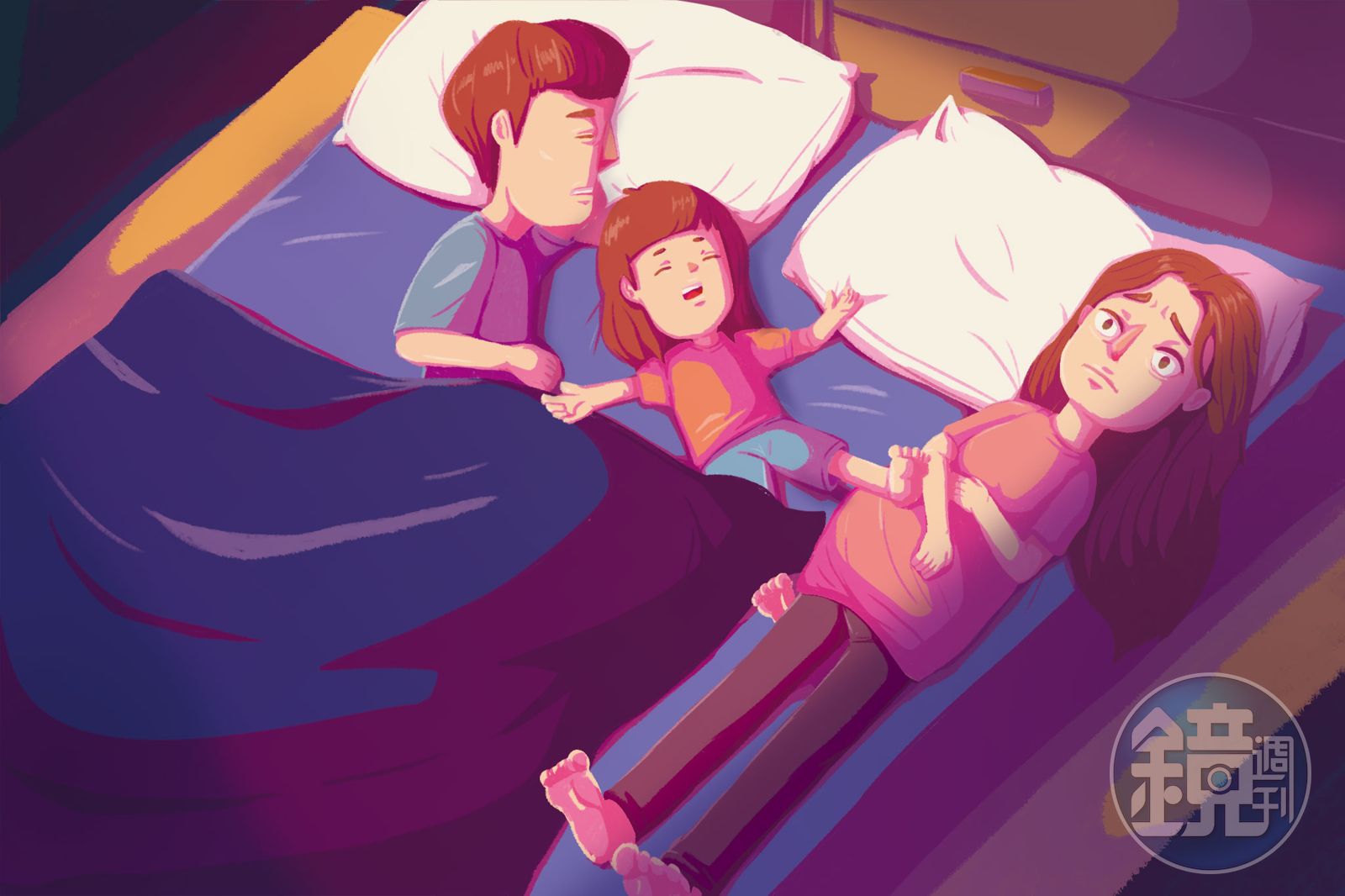 而現在我與老公居住的房間只有這間房的四分之三大小,還沒有獨立的衛浴設備,女兒又還小,喜歡黏著母親,每天晚上我們三人就像是擠沙丁魚一樣並排在雙人床上,我時常被睡相差的女兒與老公擠到床的邊緣,只要稍微翻個身就會掉下床。