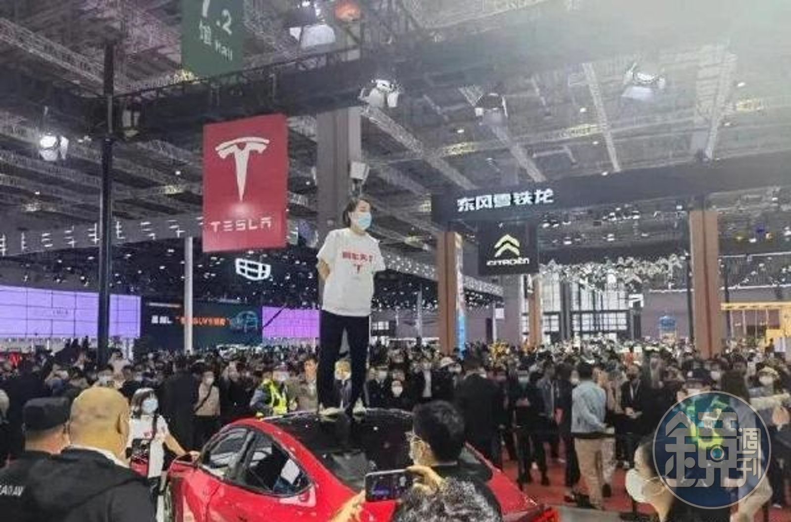 根據中國媒體報導,這兩名大鬧車展的張姓和李姓女子,由於和特斯拉發生消費糾紛,才會到車展抗議表達不滿。從網路上流傳的現場影片可見,張女和李女身穿「煞車失靈」的白色T恤,其中張女不顧工作人員勸阻爬上車頂,重複大喊「特斯拉煞車失靈」,雖然工作人員拿傘想擋住女車主避免民眾拍攝,但她仍將傘用力撥開,最後她被保全拖離現場。