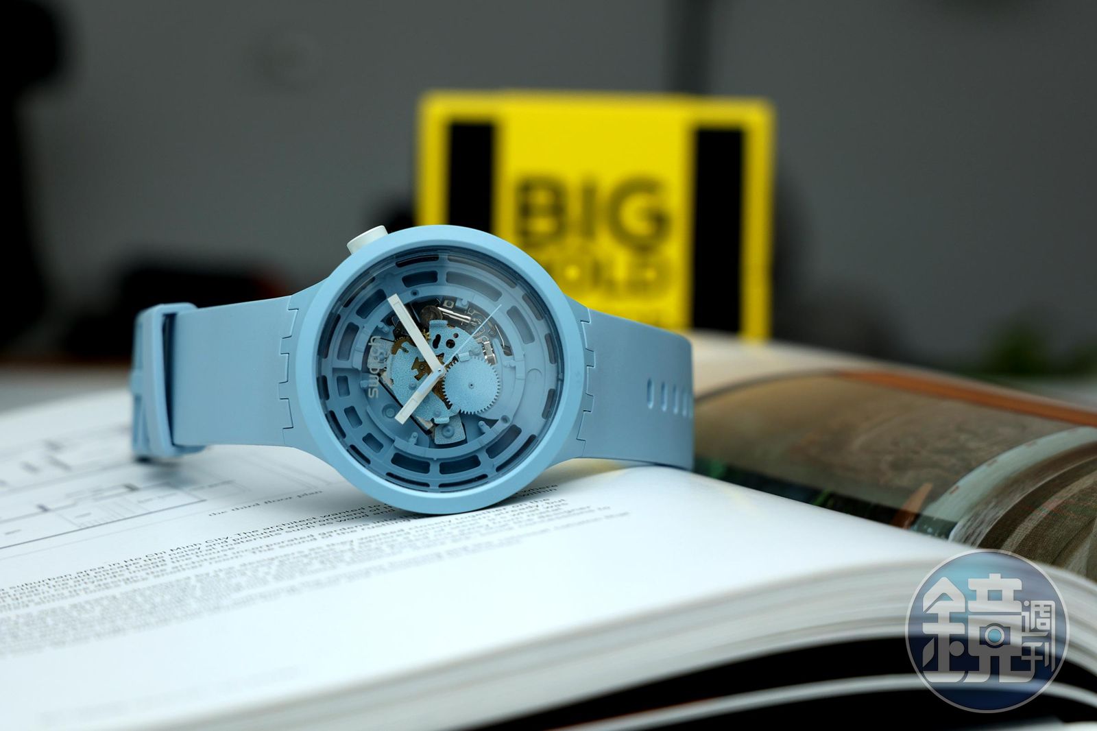 率先運用Bioceramic生物陶瓷材質的款式,是近幾年SWATCH主推的Big Bold系列,47mm大錶徑的設計,搭配通透開放面盤的配置,外型看起來相當搶眼!除了有經典黑與白色及灰色之外,並推出Swatch獨家特調馬卡龍清新色調藍色與粉色,都採用單色系的顏色表現,結合豐富的面盤結構,大氣卻又層次十足,絕對是手上的流行單品!