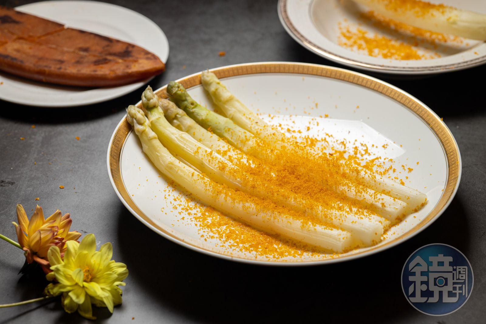 這就是白蘆筍佐台灣烏魚子,鹹香與清甜完美結合,白蘆筍的產季,初夏限定。