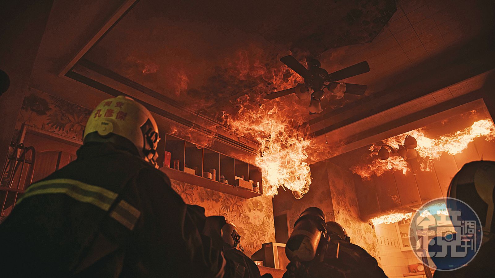 「火場危險多半來自濃煙,很多人因此迷路、失足,所以消防員會在伸手不見五指的環境下訓練,有演員因此產生恐慌被迫暫停,可以想見消防員在火場救災的心理素質有多強大。」蔡銀娟說。