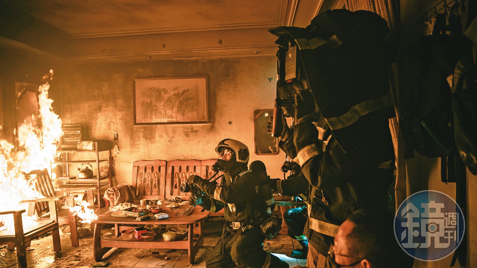 火場特技指導為顧及人員安全,必須縝密設計排煙與逃生路線。如劇中一處大型火災場景,是租借百坪廢棄廠房搭建的3層樓實景,除了天花板上方留通道排煙,牆後有人員逃生走道,牆面添加石膏塗料,以便反覆燃燒,工作人員及演員服裝也要防火,降低易燃性。