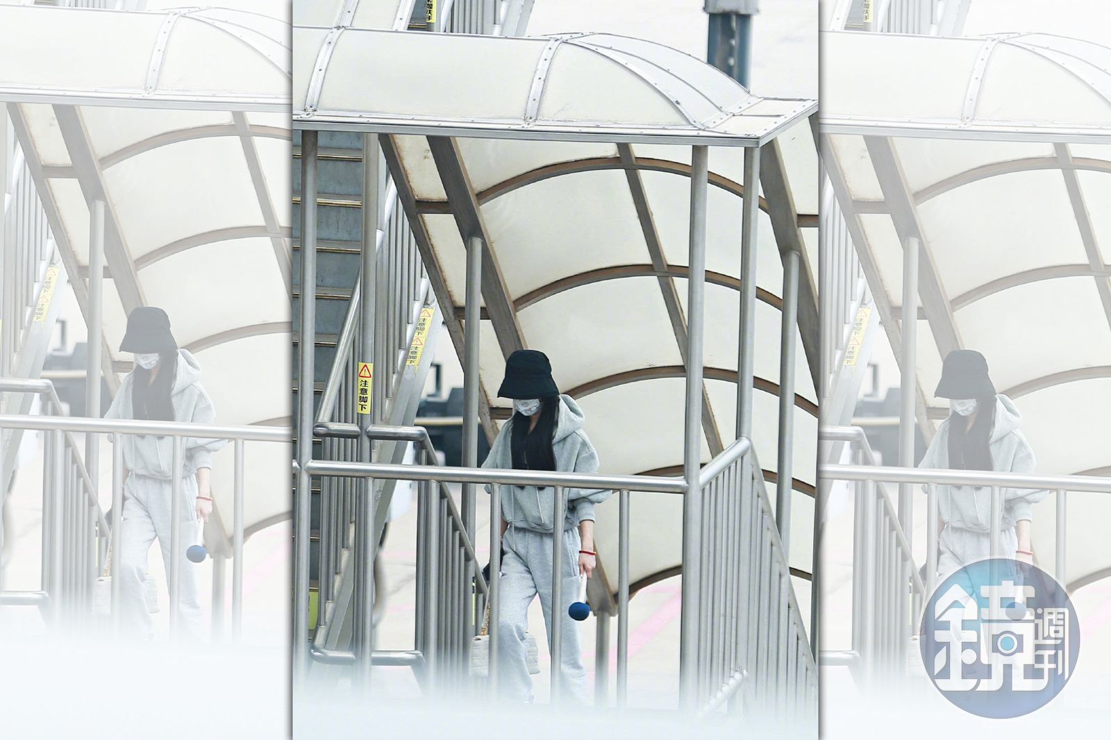 中國大陸女星趙麗穎兩年前跟男星馮紹峰結婚,隔年生下兒子「想想」,23日上午突然宣布離婚,消息震驚各界,雙方表示是因為工作聚少離多,強調是「和平分手」。而日前有大陸網友意外拍下趙麗穎身影,也是她離婚後首度露面,穿著灰色運動服,一手拎著白色名牌包,另一手拿著按摩槌,低頭走上樓梯,全身包得緊緊的,看起來若有所思。