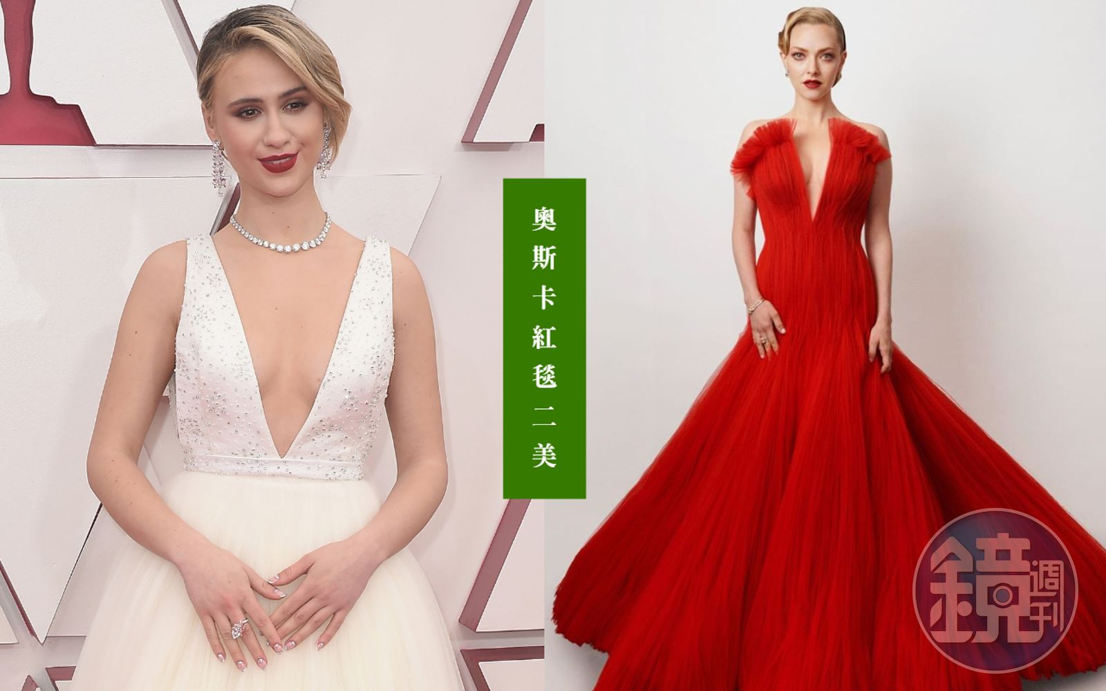本屆的奧斯卡奧斯卡紅毯,深V設計是一大「嬌」點,除了瑪麗亞巴卡洛娃,以電影《曼克》角逐最佳女配角的亞曼達賽佛瑞,身著深V的Armani Privé櫻桃紅禮服,搭配Forevermark鑽飾,兩人被稱讚是紅毯兩美。