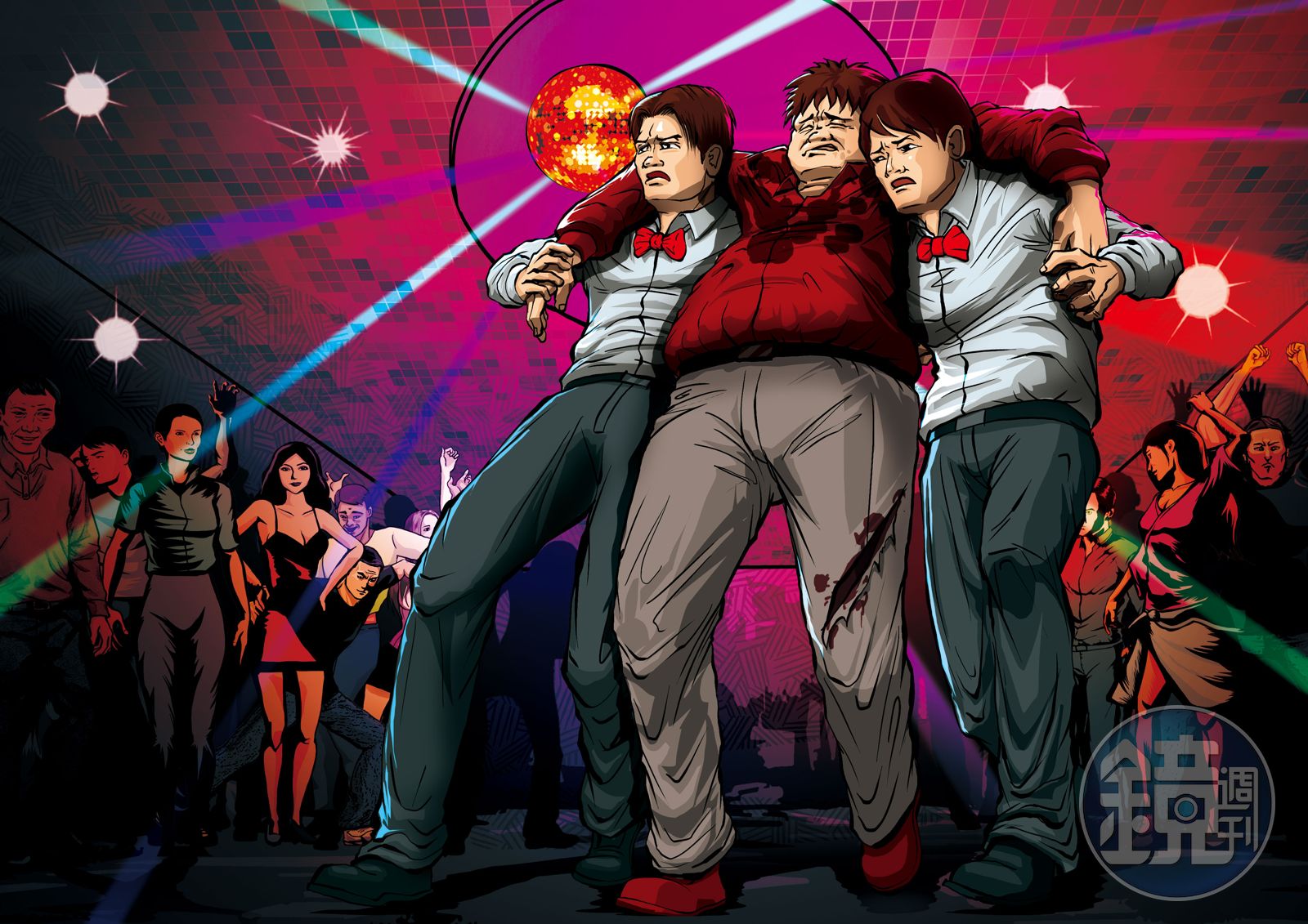 拿著厚厚的卷宗及現場圖,路學敏向本刊娓娓道出當年案發經過。他說,事發時他在包廂,突然有同事衝進來大喊:「有人打架!」他馬上到外場的舞池區察看,一眼看到劉姓酒客在昏暗的舞池區發瘋似地大吼大叫,身體搖搖晃晃站不穩,他上前攙扶,當下感覺手上濕濕的,一看竟是血,這時酒店經理陳永昭從廁所走來,要他立即將傷者送醫,但在場幾十名酒客並沒有被這個突如其來的衝突影響,仍繼續跳舞。